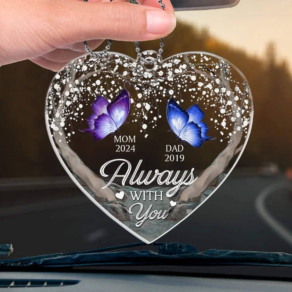 Always With You - Memorial Personalized Custom Car Ornament - Acrylic Custom Shaped - Sympathy Gift For Family Members