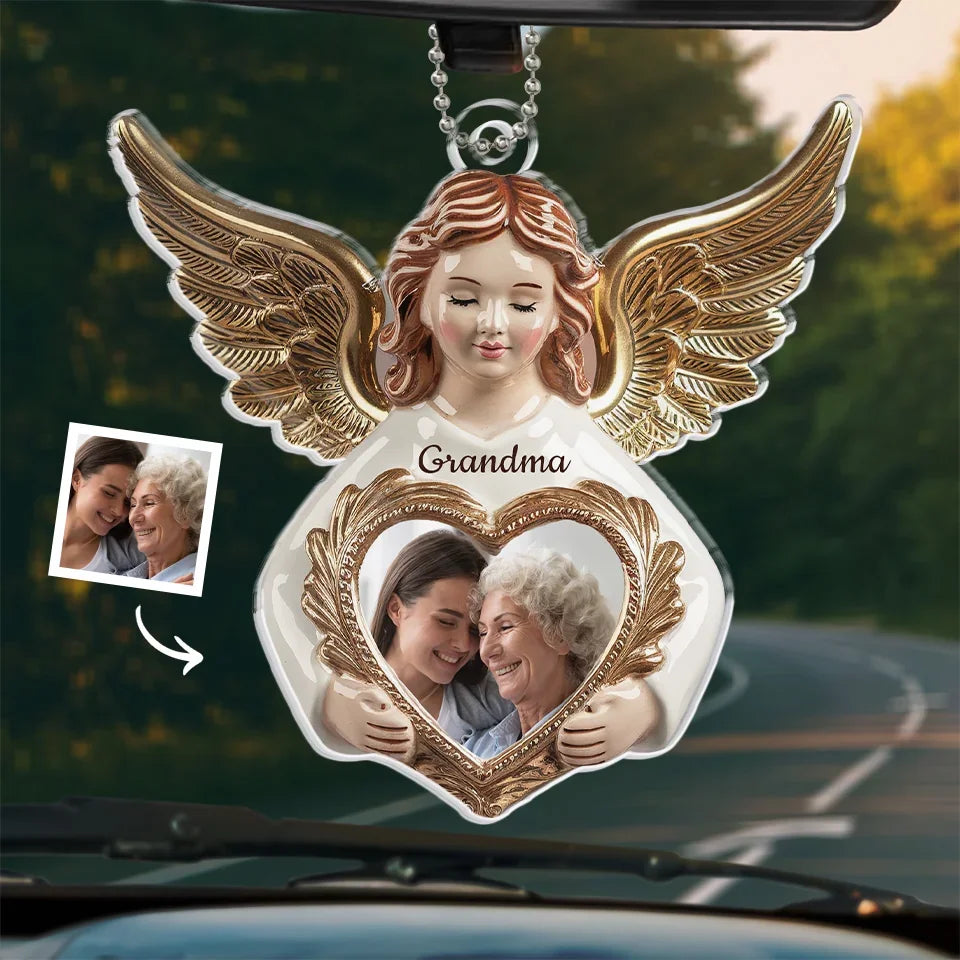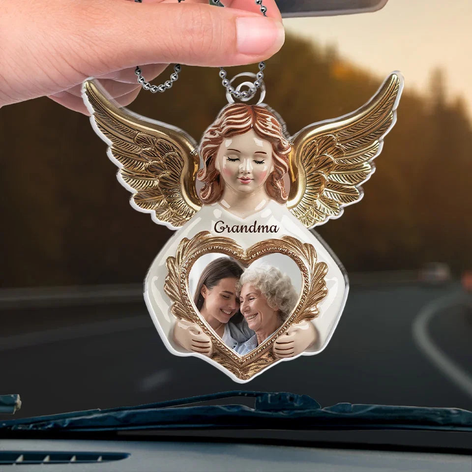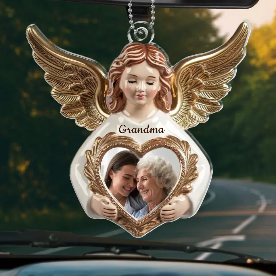 Custom Photo Love Never Departs, It Only Transforms - Memorial Personalized Custom Car Ornament - Acrylic Custom Shaped - Sympathy Gift For Family Members