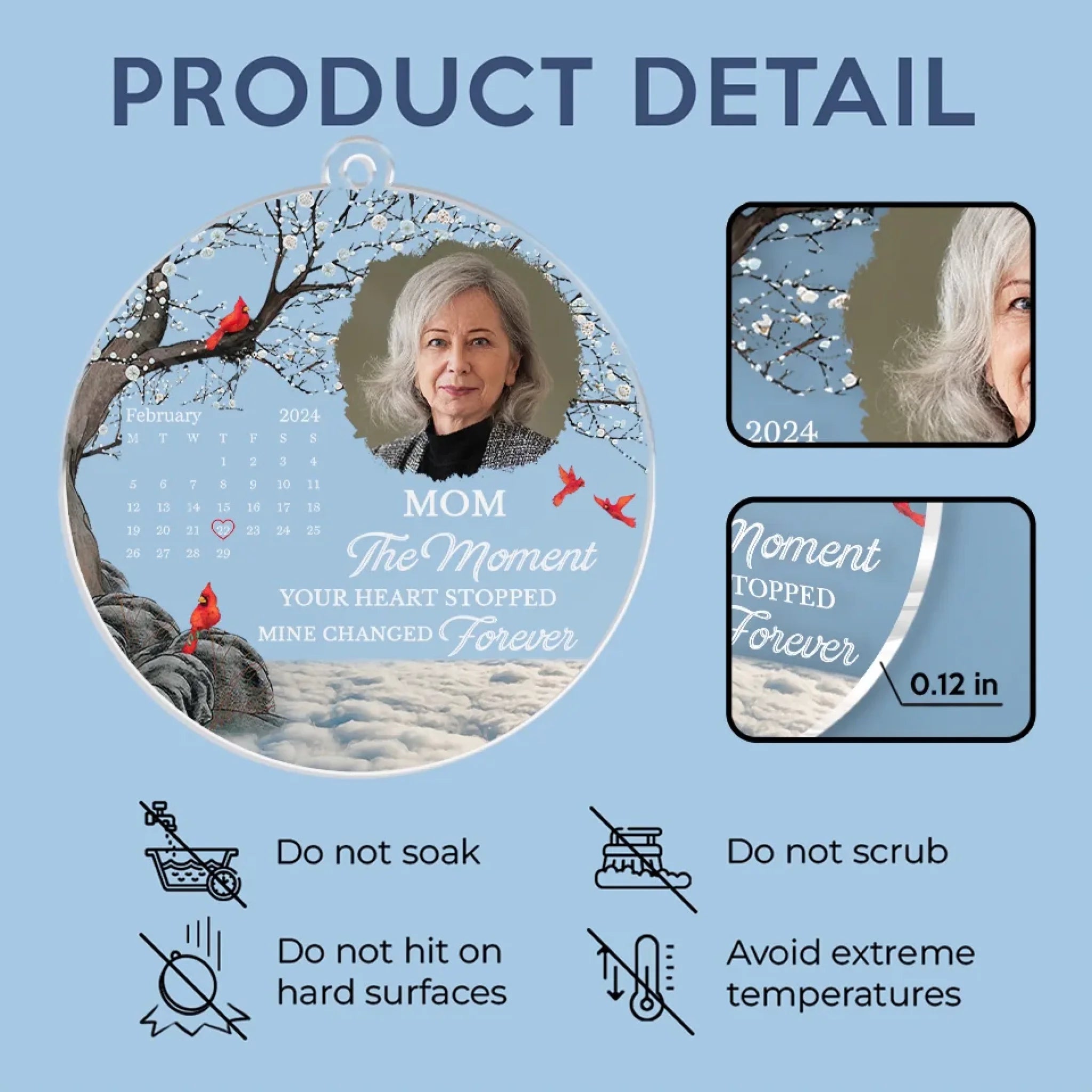 Custom Photo The Moment Your Heart Stopped, Mine Changed Forever - Memorial Personalized Custom Car Ornament - Acrylic Custom Shaped - Sympathy Gift For Family Members