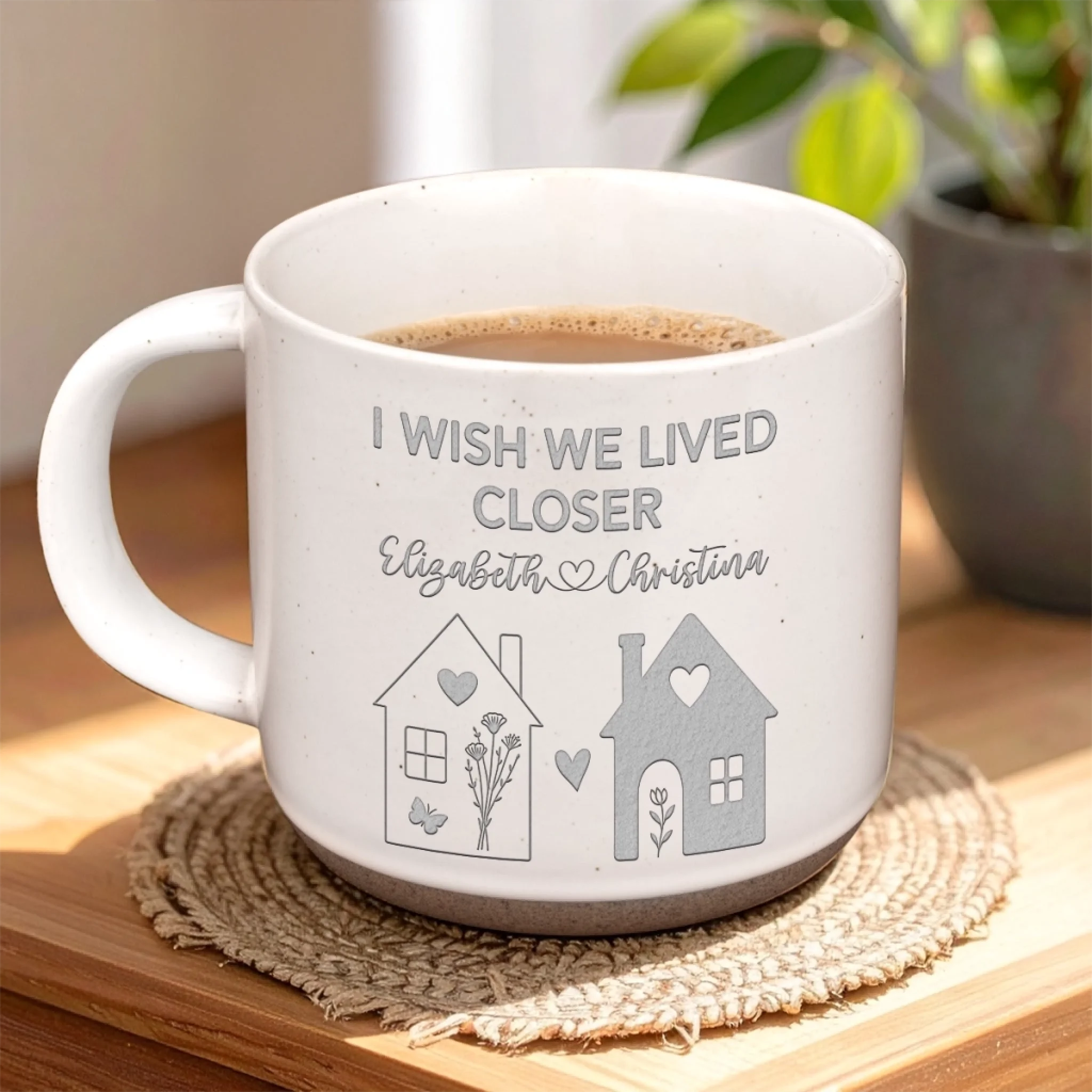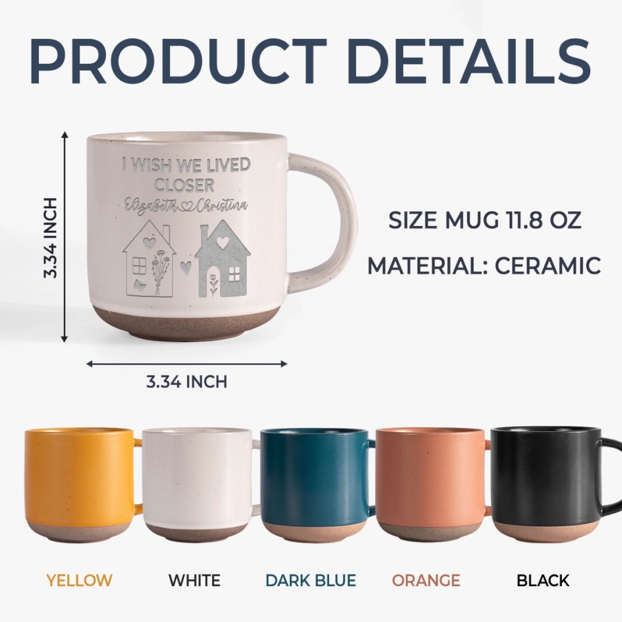 Custom Pottery Mug -Personalized Best Friend Birthday Gifts For Women, Besties, Sisters, BFF - No Distance Too Far For Us