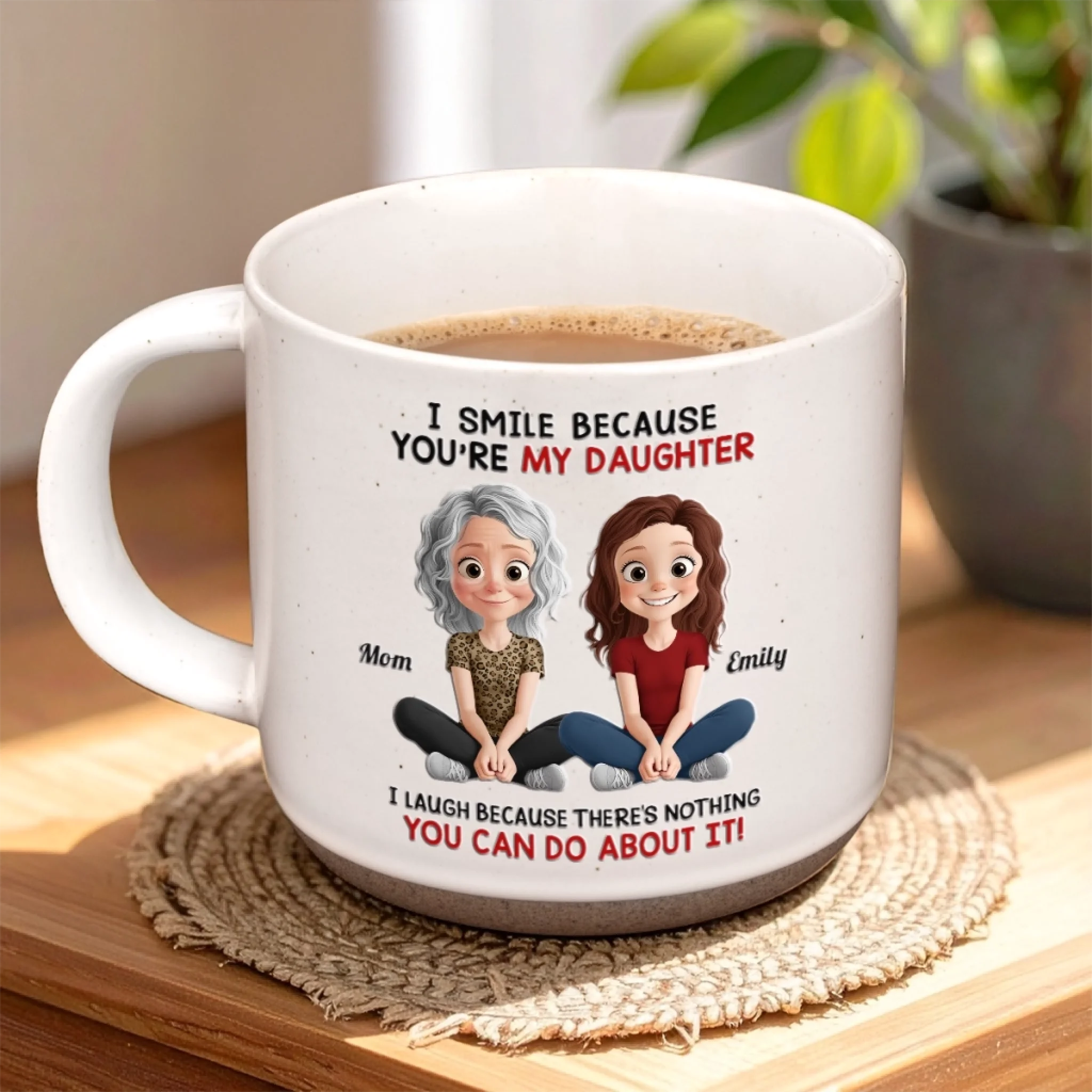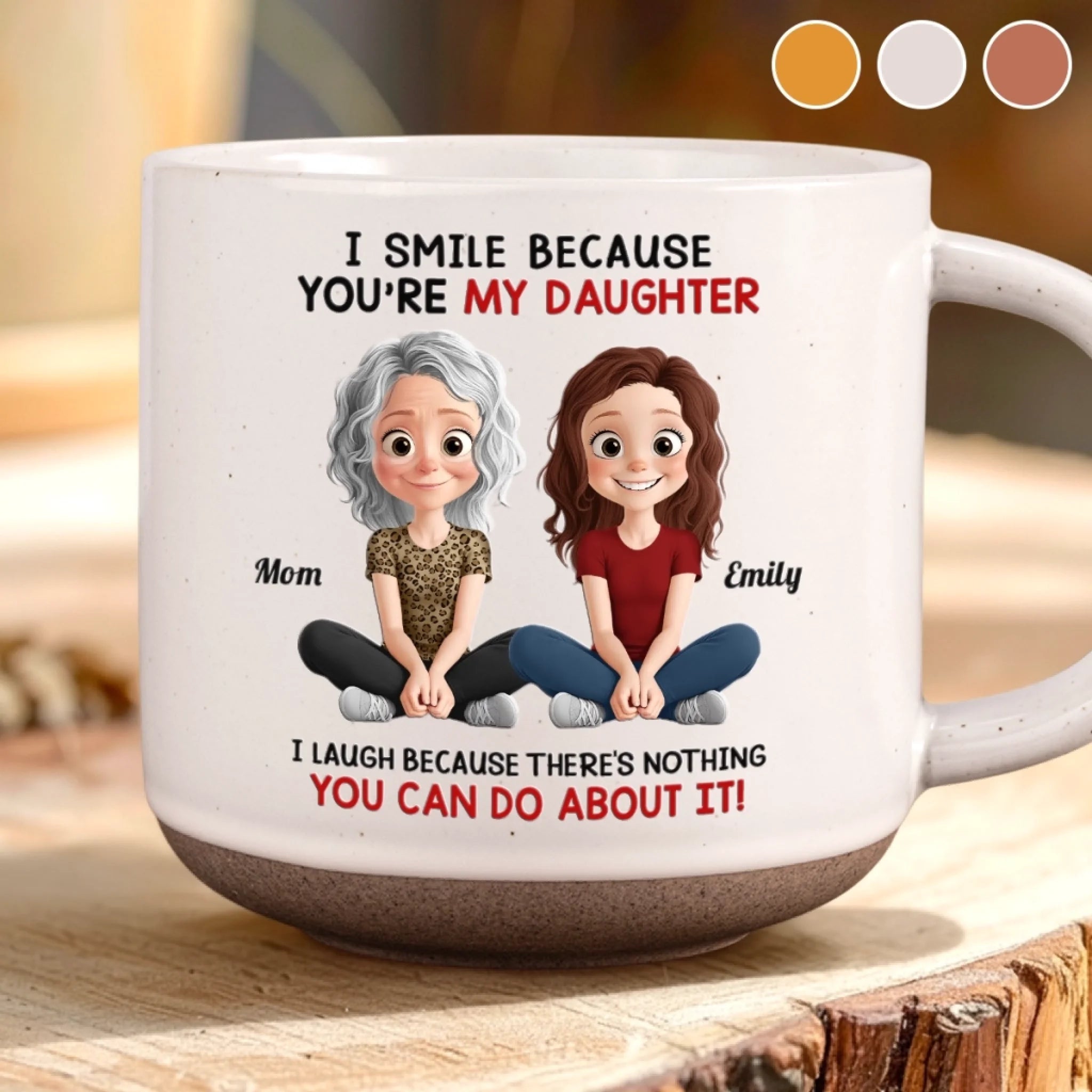 Custom Printed Pottery Mug - Personalized Birthday Gifts For Mom, Dad, Daughter - I Smile Because You Are My Daughter