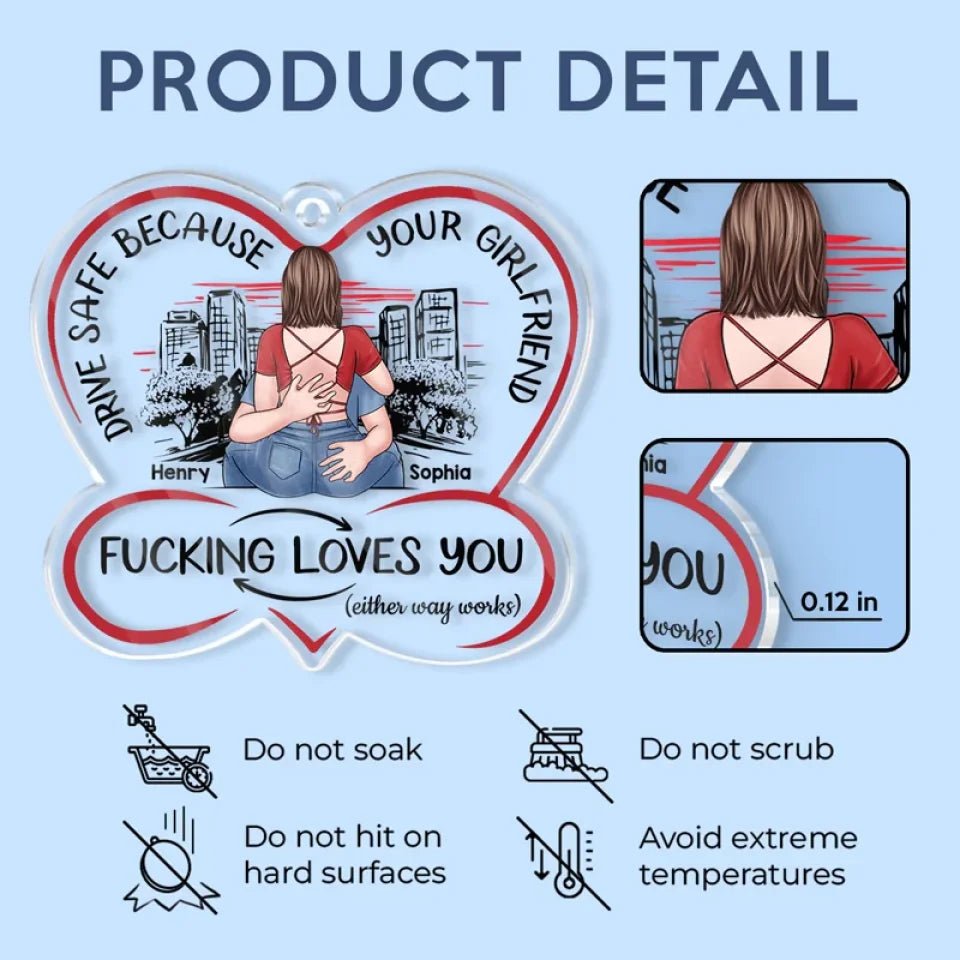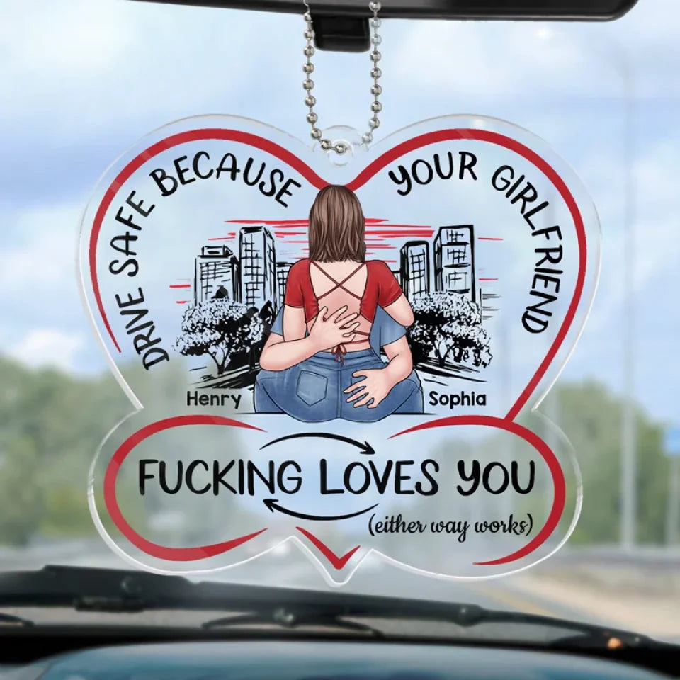 Drive Carefully, My Handsome Friend - Couple Personalized Custom Car Ornament - Acrylic Custom Shaped - Gift For Husband Wife, Anniversary