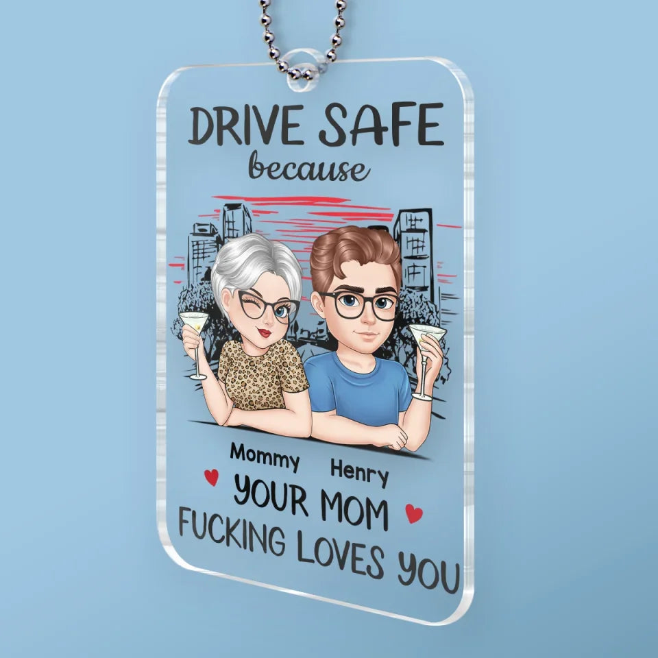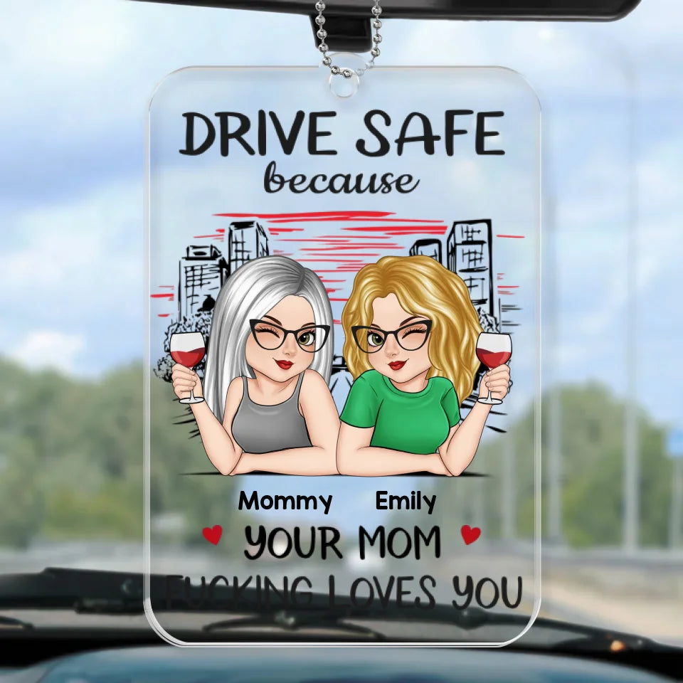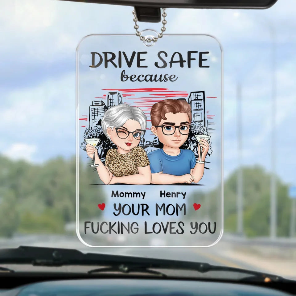 Drive Safe Because Your Mom Loves You - Family Personalized Custom Car Ornament - Acrylic Custom Shaped - Gift For Daughter, Son