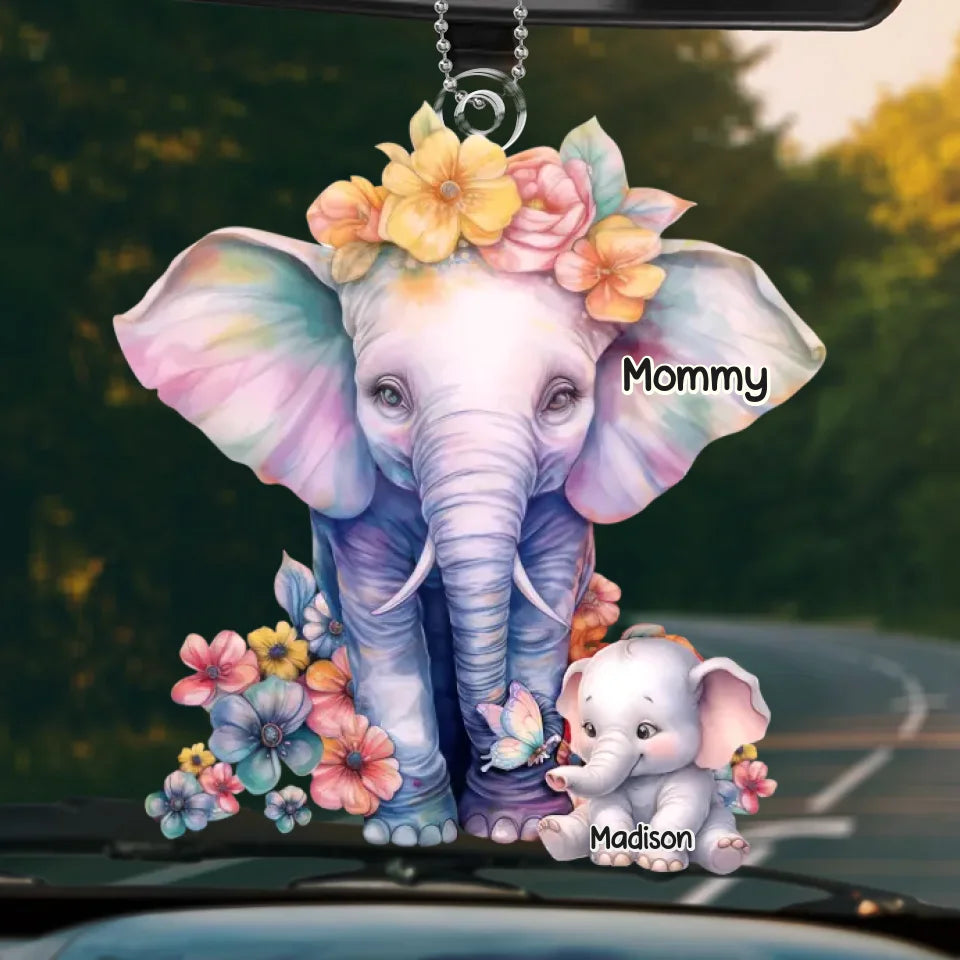 Grandma’s Love Stands Tall And Unwavering, Just Like An Elephant - Family Personalized Custom Car Ornament - Acrylic Custom Shaped - Gift For Mom, Grandma