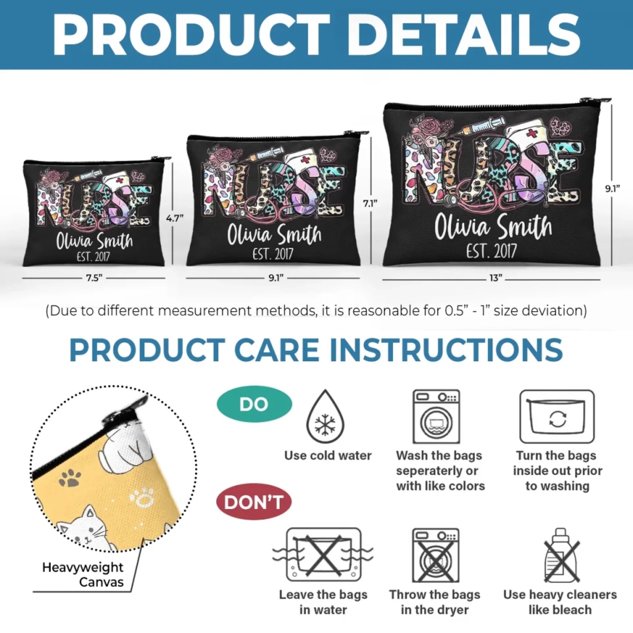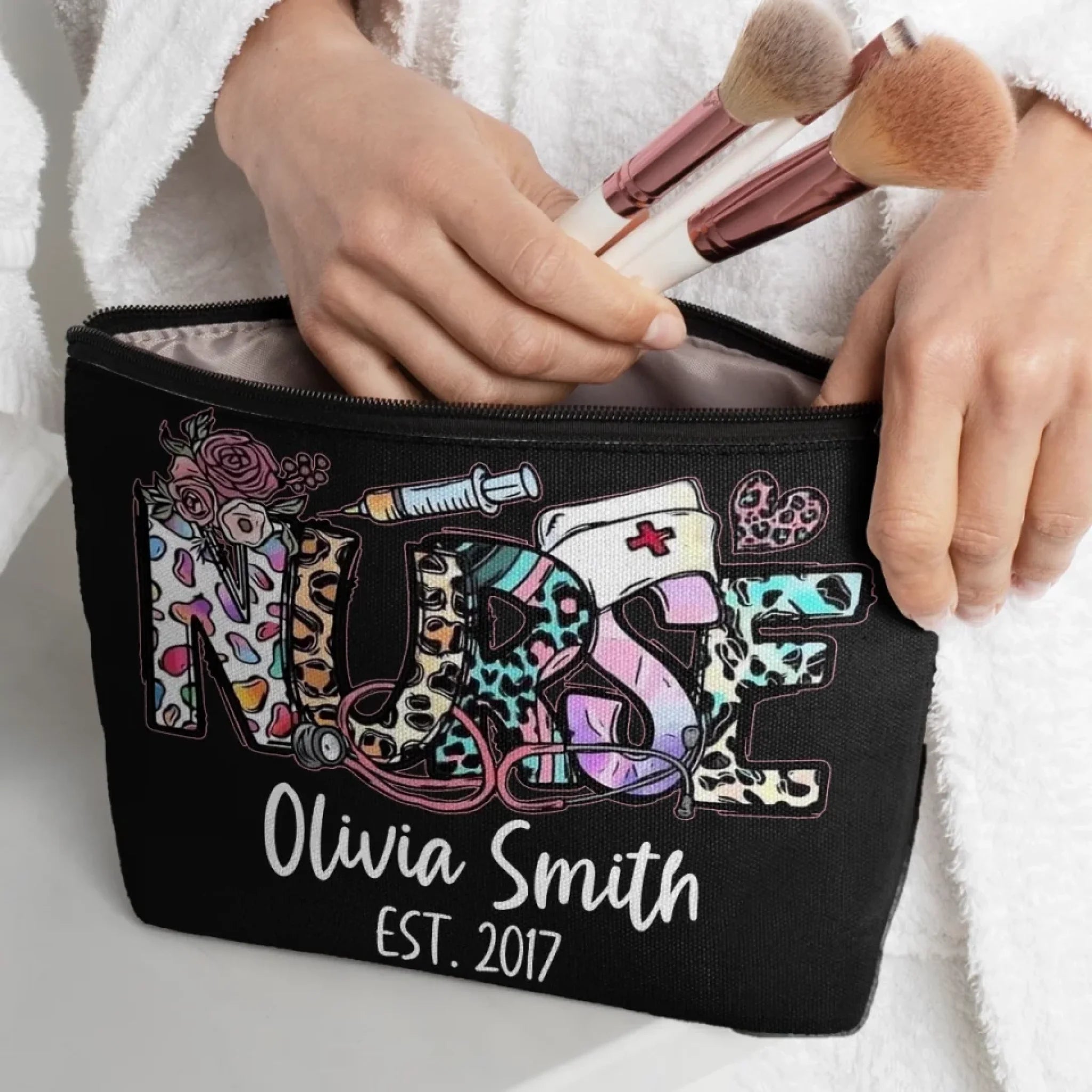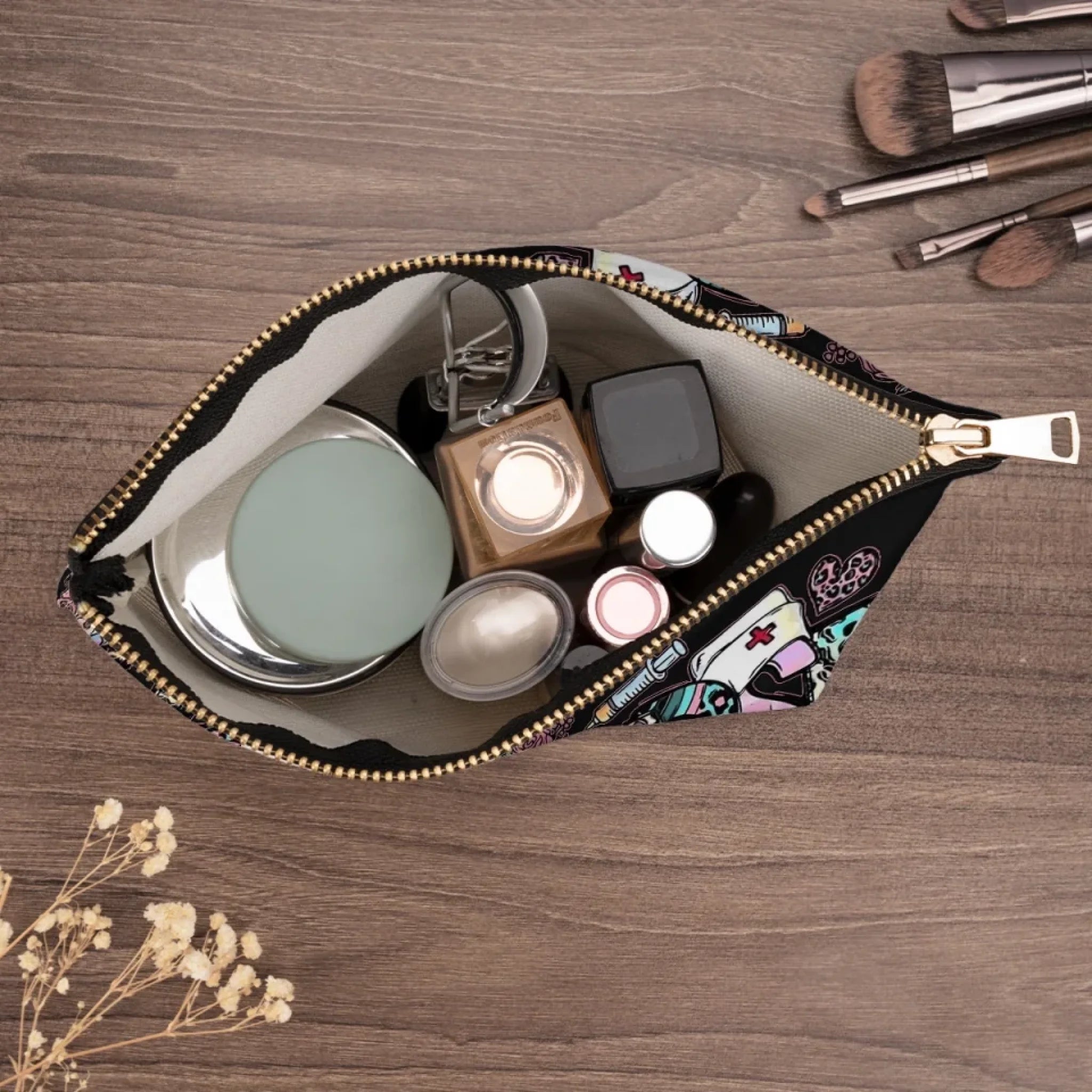 A cosmetic bag is a portable storage solution for organizing beauty and grooming products. It's compact, durable, and often has multiple compartments and pockets for easy organization. Perfect for travel or everyday use and matches various fashion styles. It will be a perfect gift for your loved ones on any occasions.