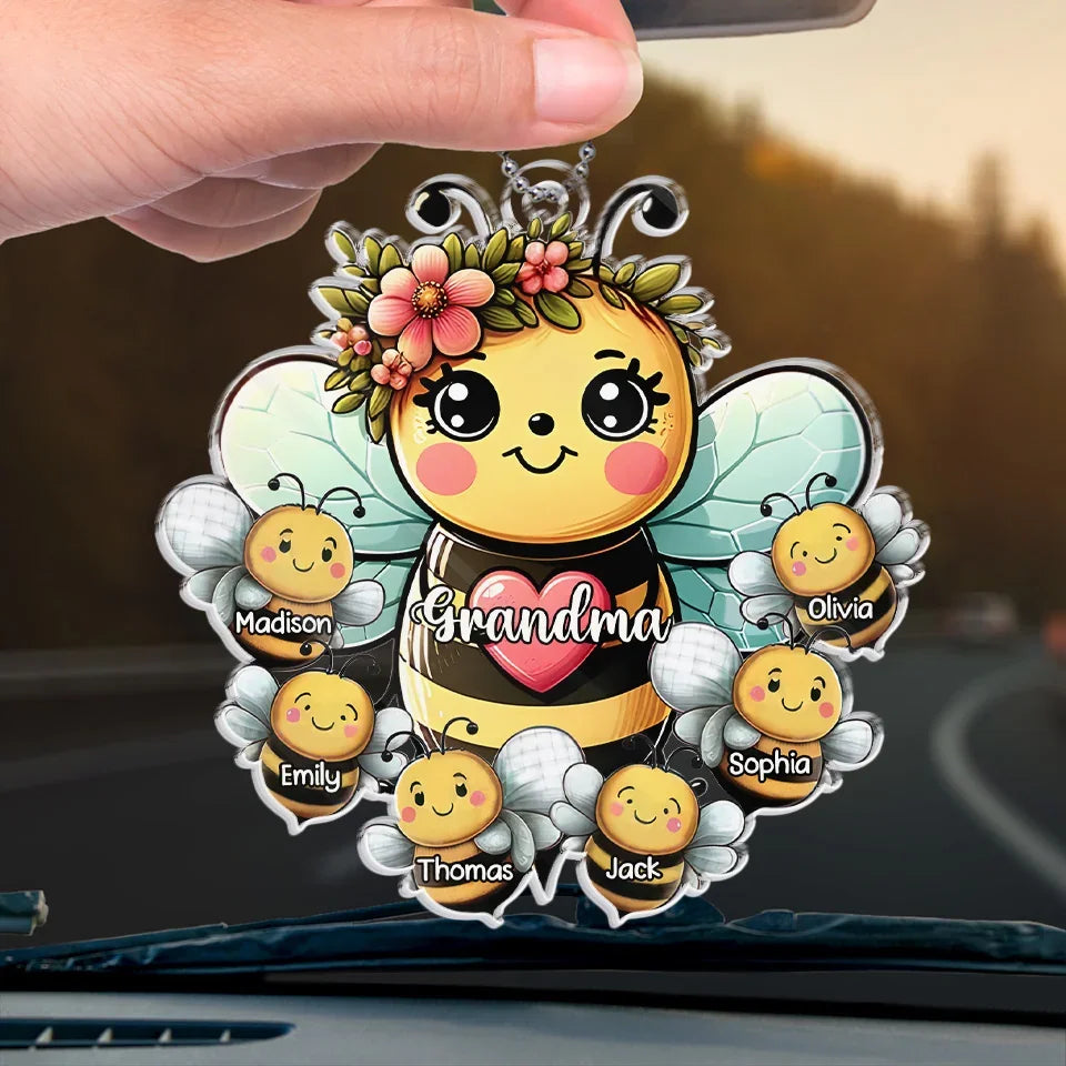 Like A Bee, Grandma Fills Our Lives With Sweetness - Family Personalized Custom Car Ornament - Acrylic Custom Shaped - Gift For Mom, Grandma