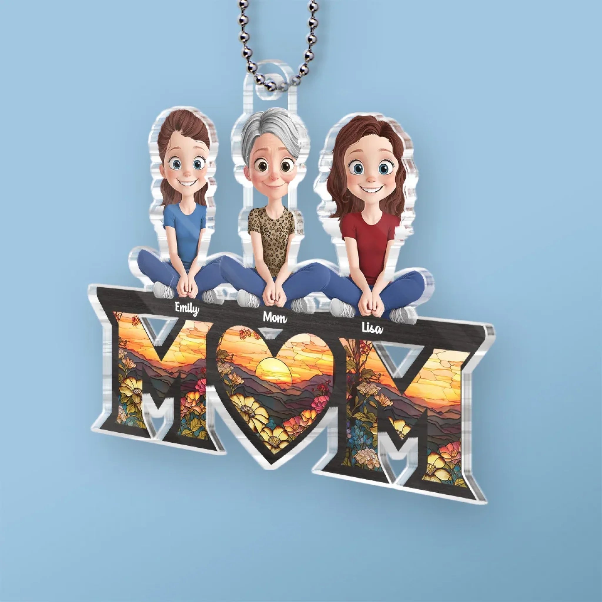 Love You To The Moon And Back - Family Personalized Custom Car Ornament - Acrylic Custom Shaped - Mother's Day, Gift For Mom, Grandma