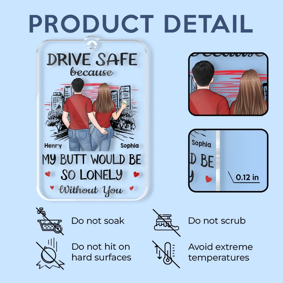 My Butt Would Be So Lonely Without You - Couple Personalized Custom Car Ornament - Acrylic Custom Shaped - Gift For Husband Wife, Anniversary