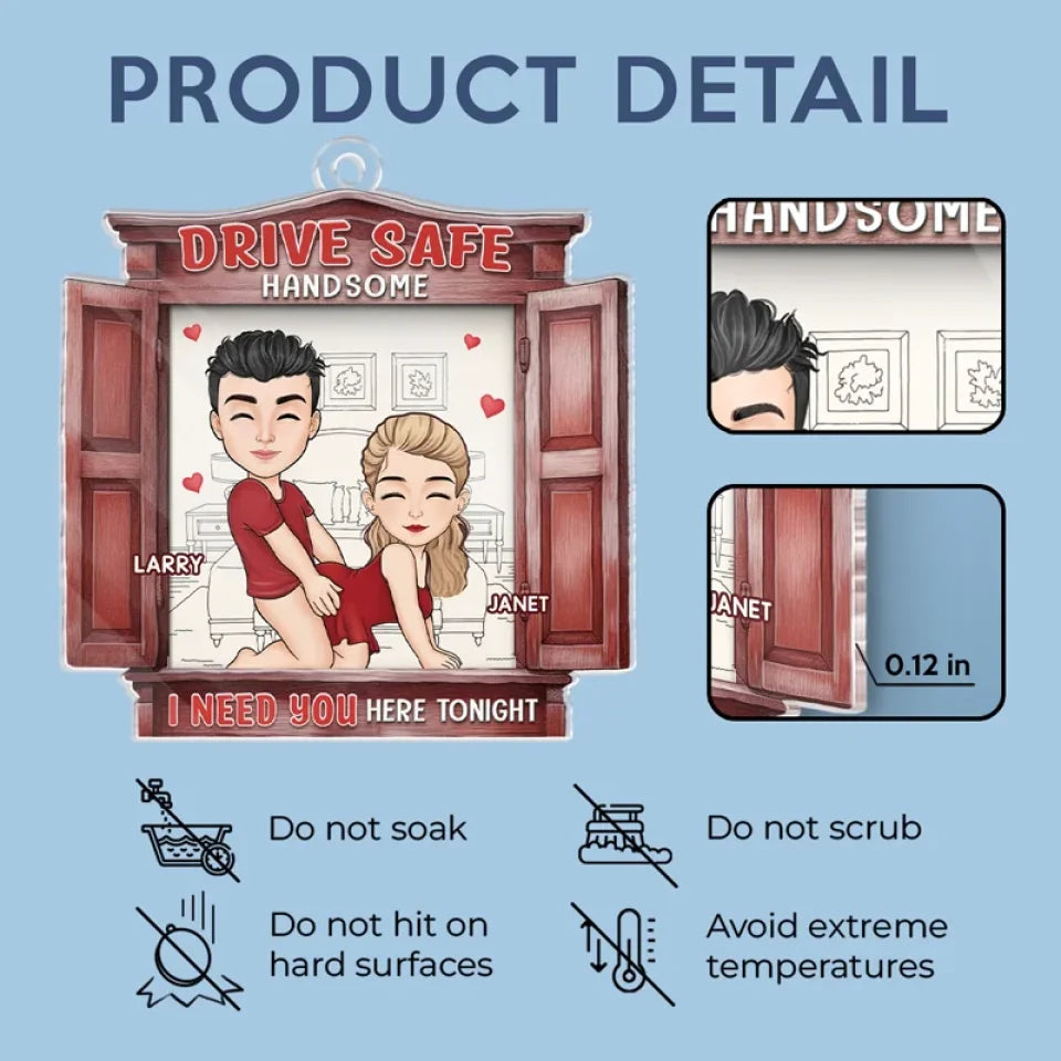 Take Care On The Road, Handsome - Couple Personalized Custom Car Ornament - Acrylic Custom Shaped - Gift For Husband Wife, Anniversary