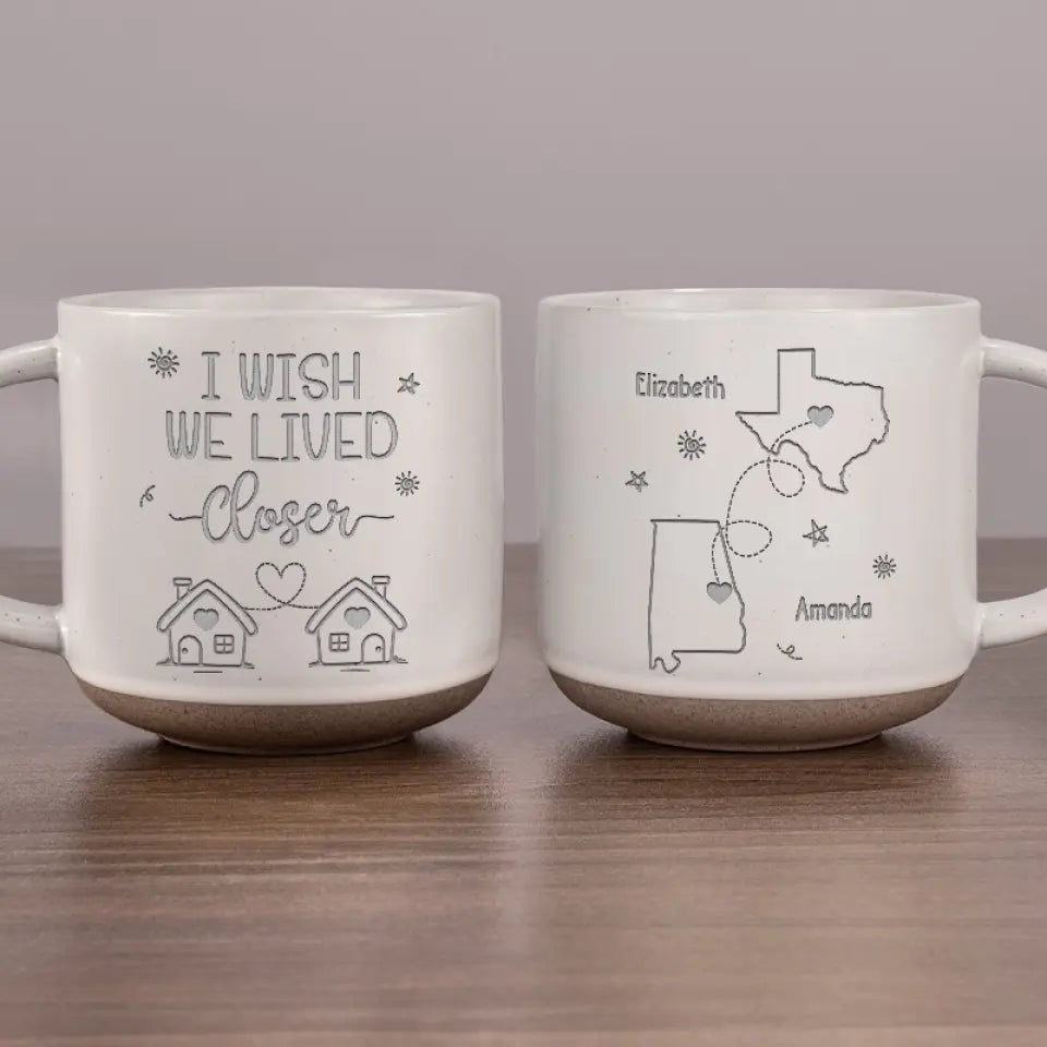 Wish We Lived Closer - Bestie Personalized Custom Pottery Mug - Gift For Best Friends, BFF, Sisters