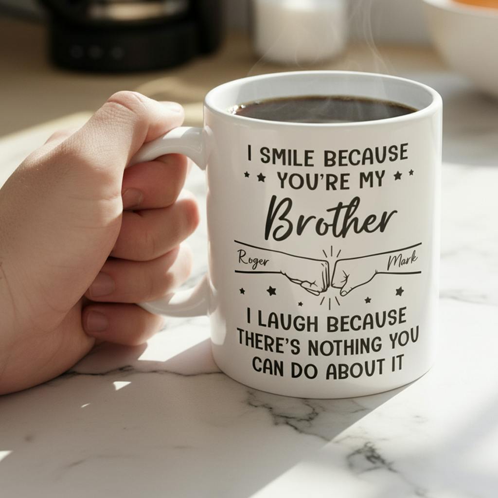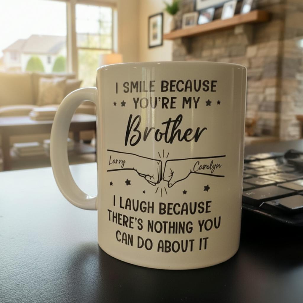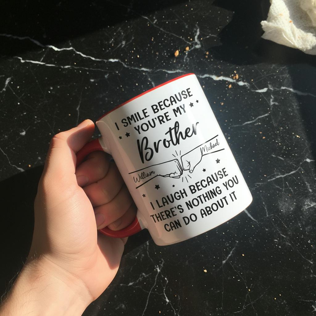 Custom Accent Mug - Personalized Birthday Gifts For Mom, Dad, Brother, Sister - I Smile Because You're My Brother