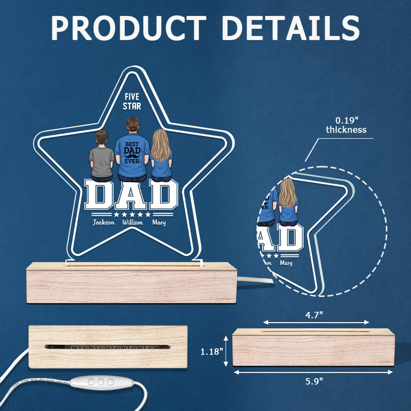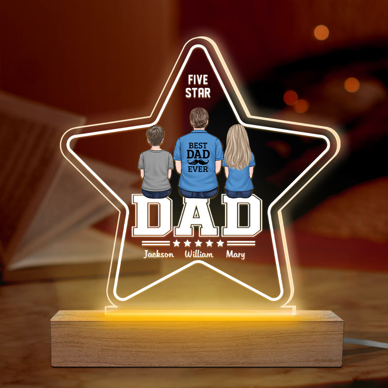 Best Dad Ever - Family Personalized Custom Five Star Shaped 3D LED Light - Father's Day, Birthday Gift For Dad