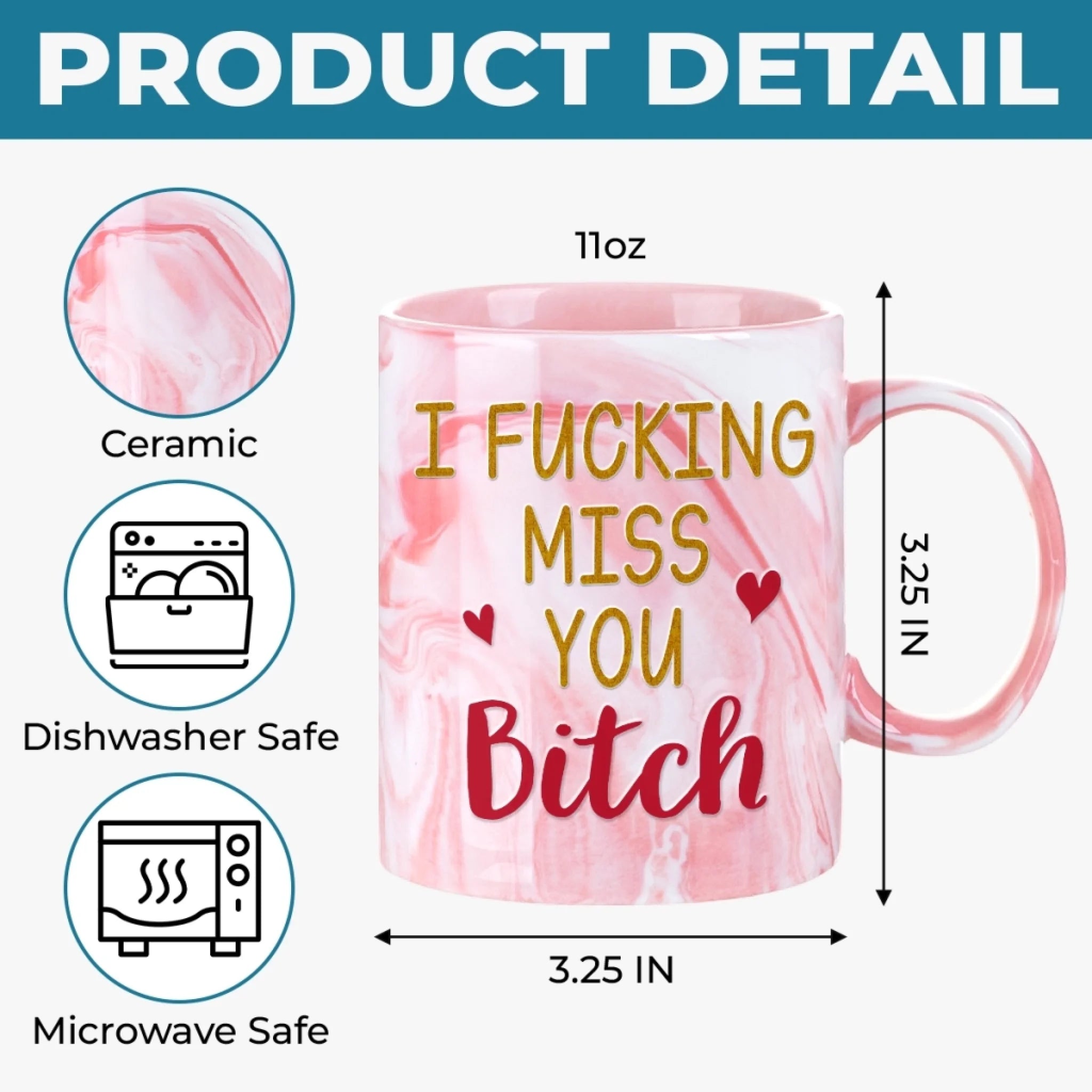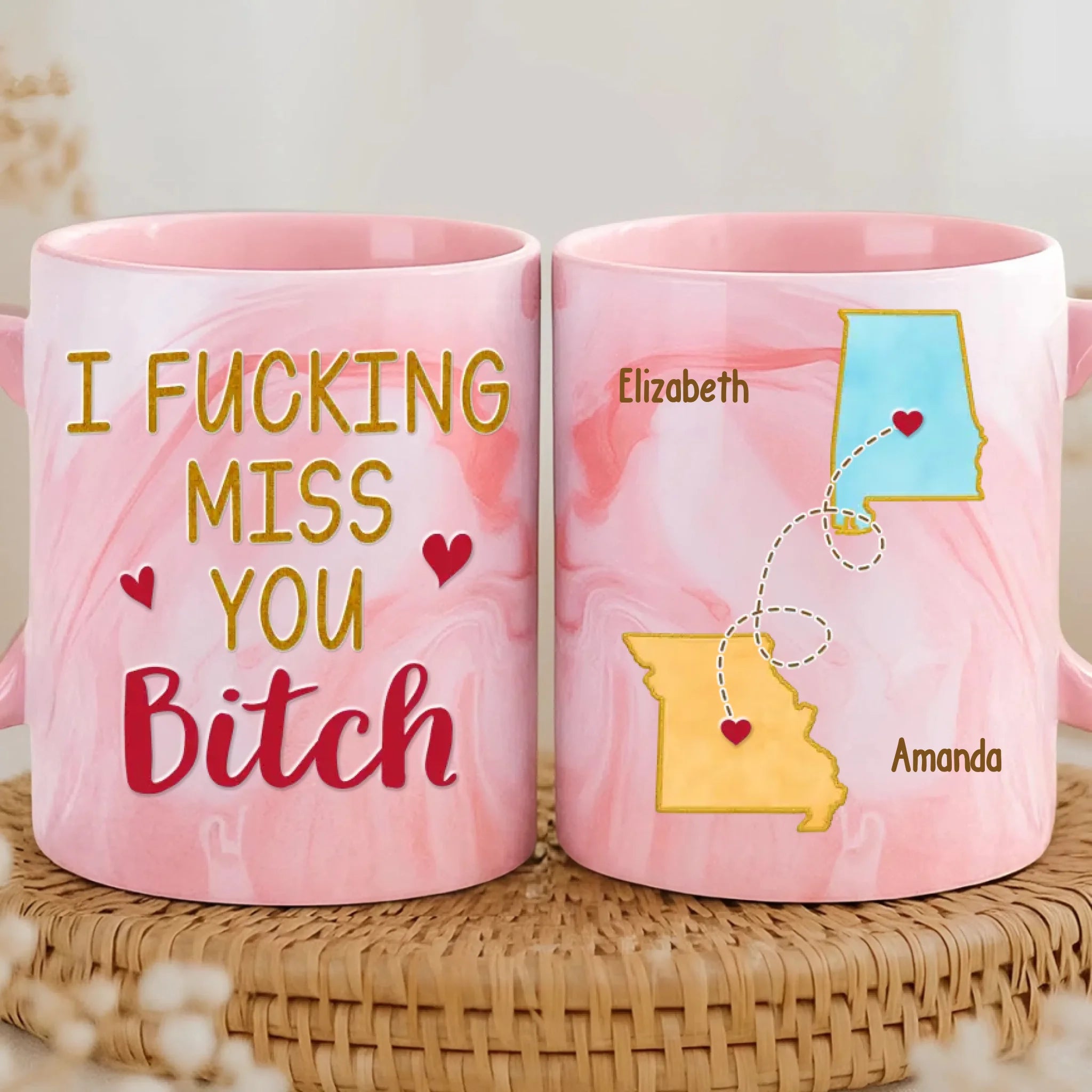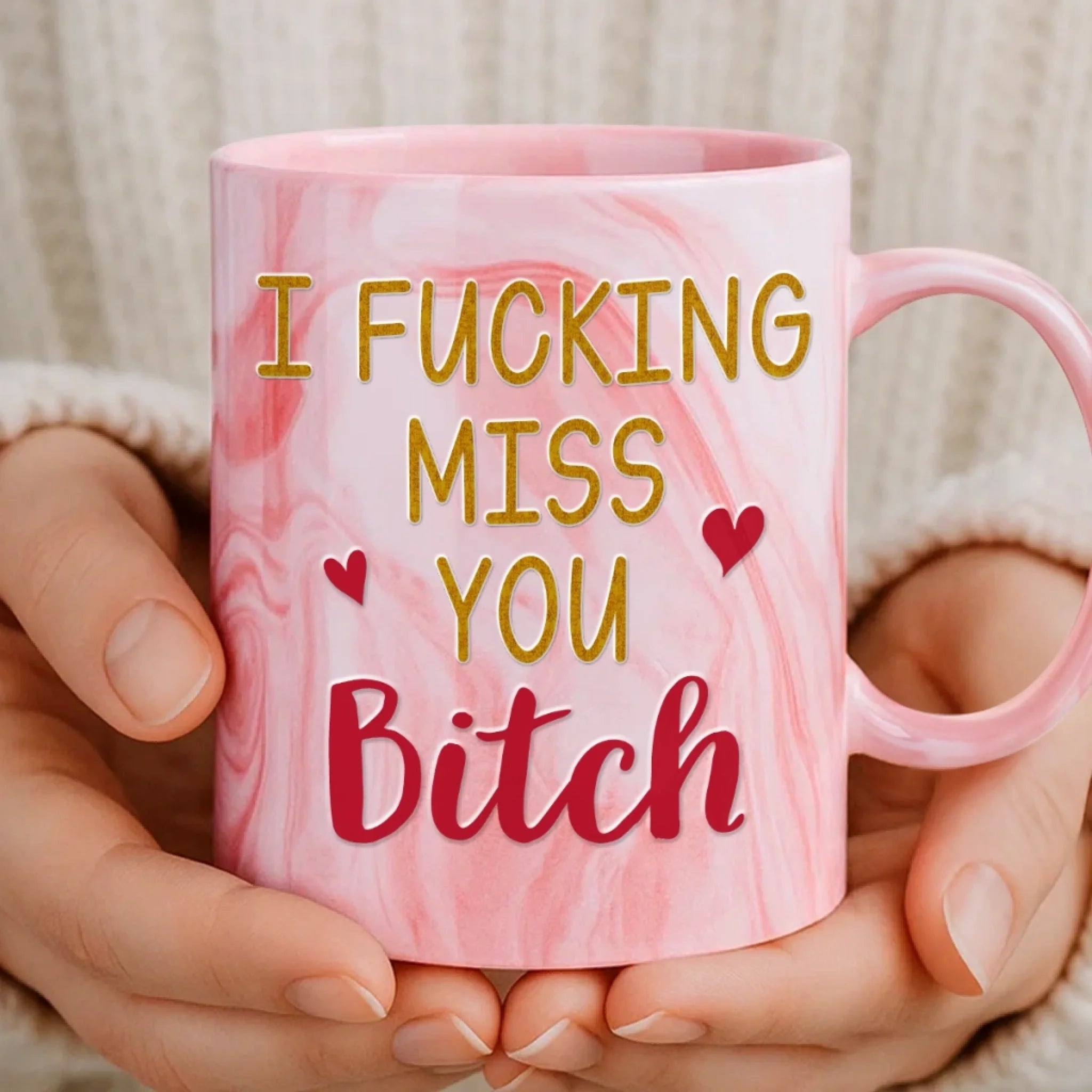 Custom 11oz Pink Marble Mug - Personalized Best Friend Birthday Gifts For Women, Besties, Sisters, BFF - Pretty Minds Pink Hearts