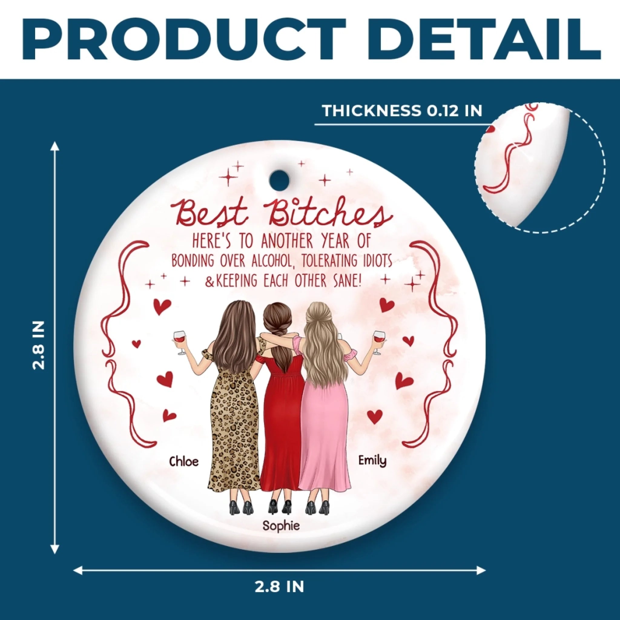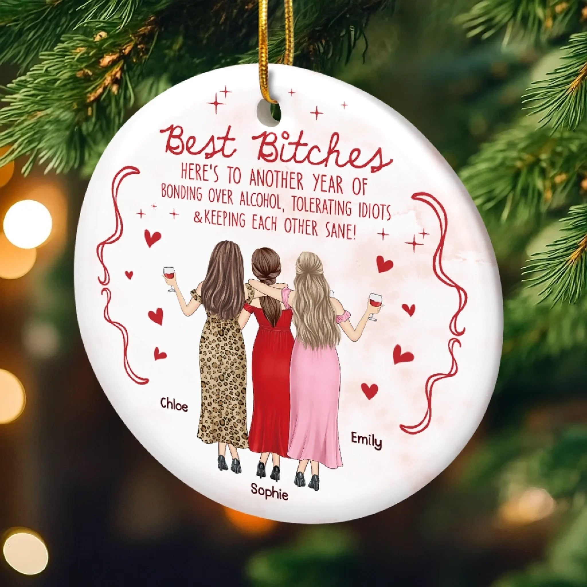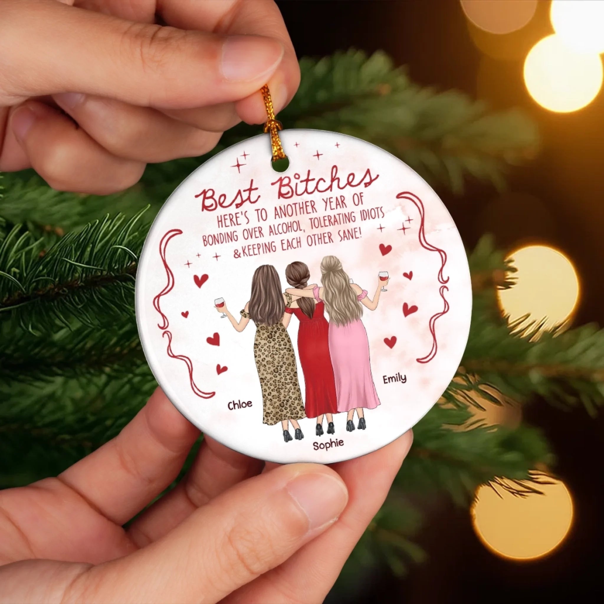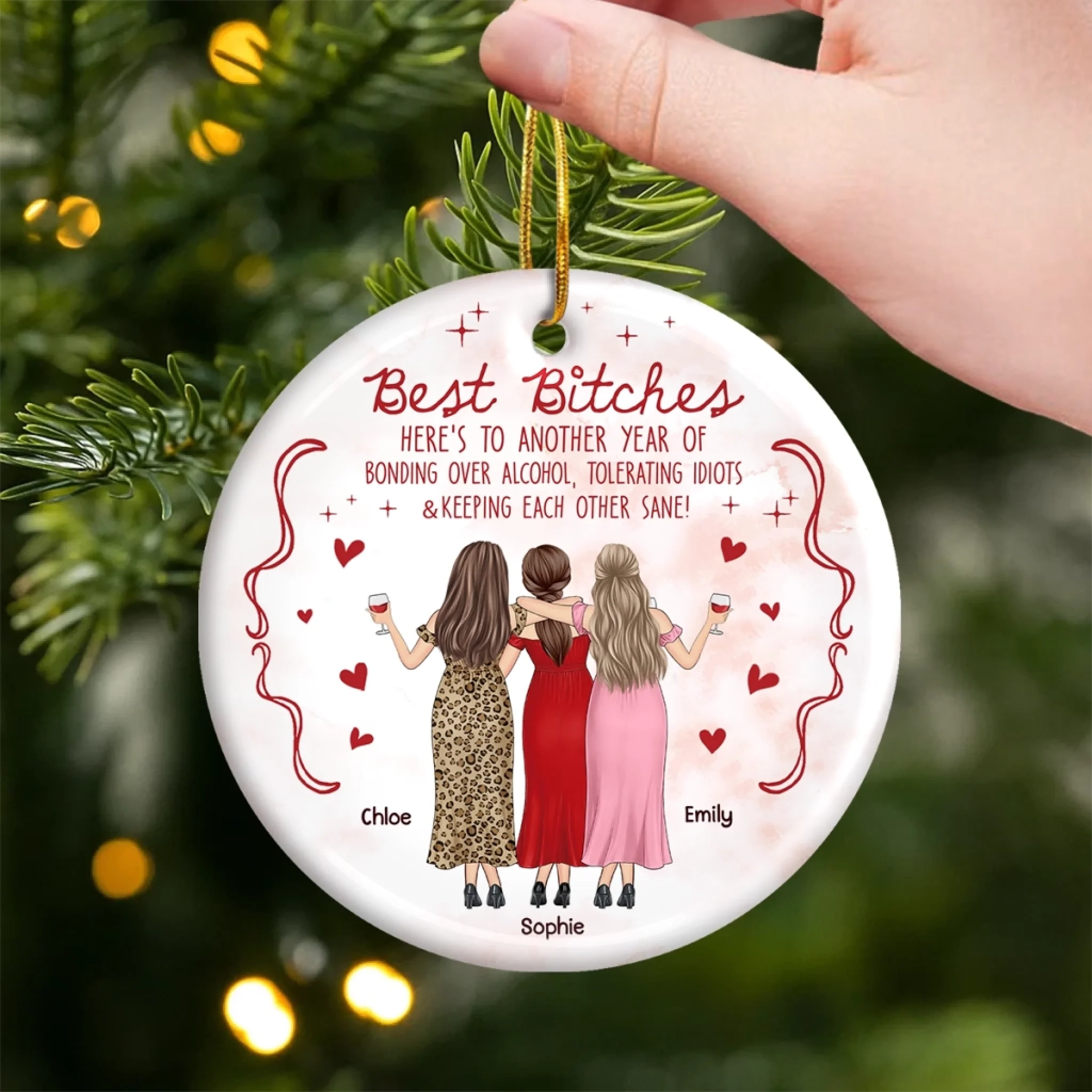 Custom Ceramic Ornament - Personalized Best Friend Christmas Birthday Gifts For Women, Besties, Sisters, BFF - Shining Through Every Season