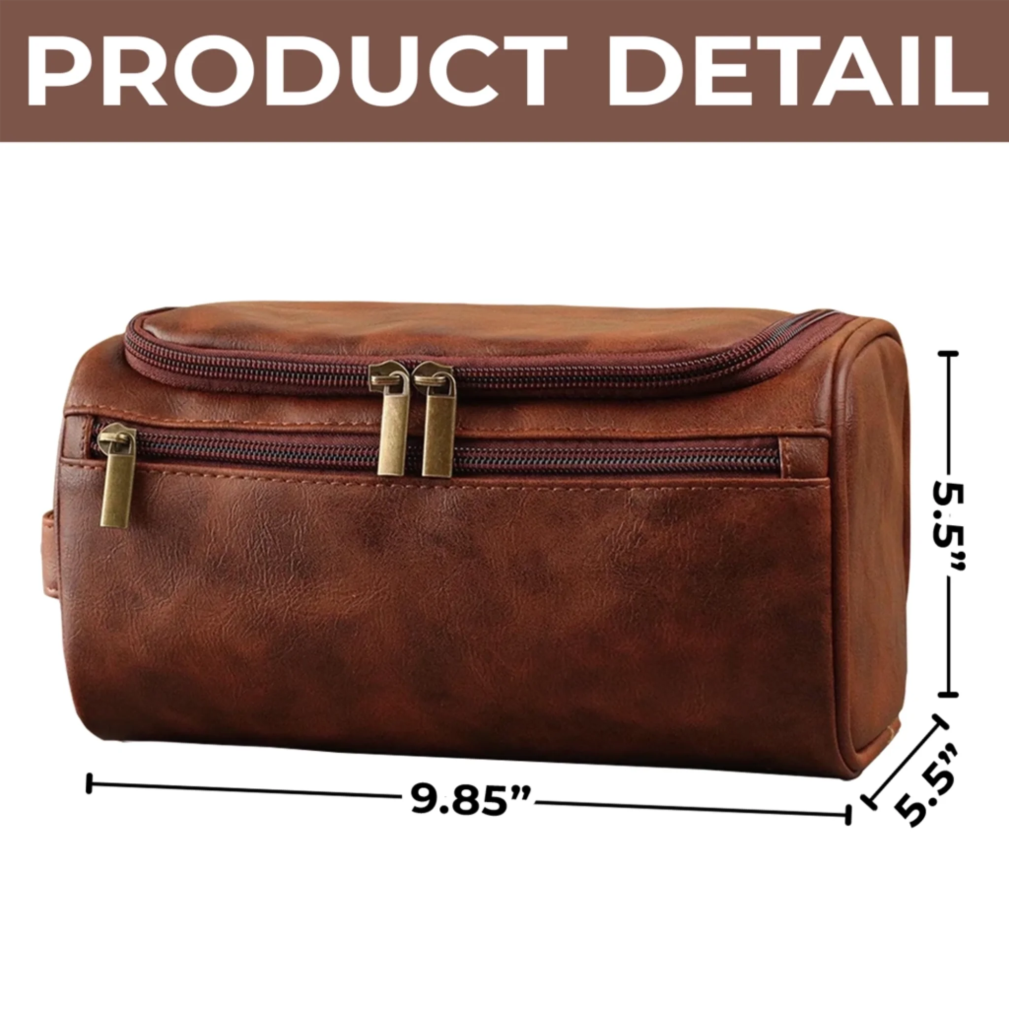 Custom Engraved Leather Toiletry Bag - New Arrival, Personalized Birthday Gifts For Dad, Brother, Grandpa, Husband - For The Man Who’s Always On The Move AMZ