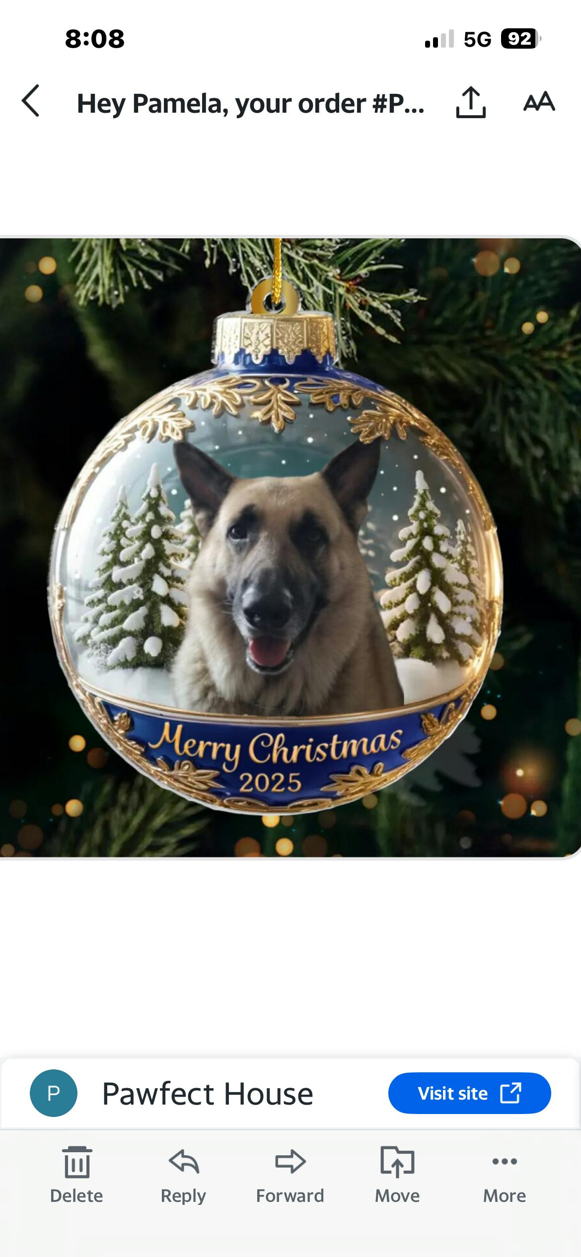 I am very happy with my ornament. It turned out as great as I was hoping for. Thank you for the Wonderful work, I will cherish this ornament for years to come.