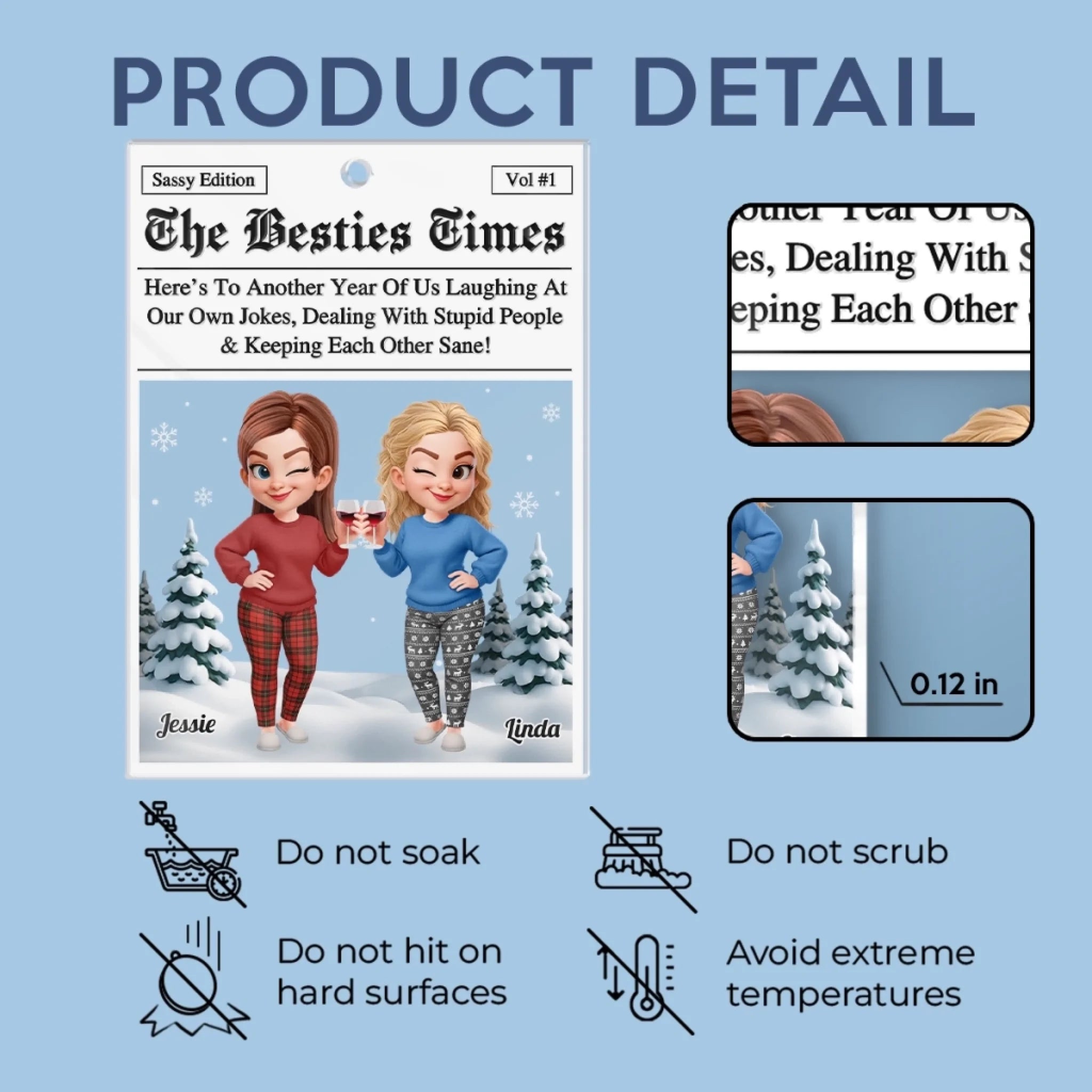Please note: Due to the difference in monitor and light effect, the actual color and size of the item may be slightly different from the visual image. Furthermore, please be noted this is a printed acrylic ornament and the faux 3D effect is used to give the item a premium, deep look.