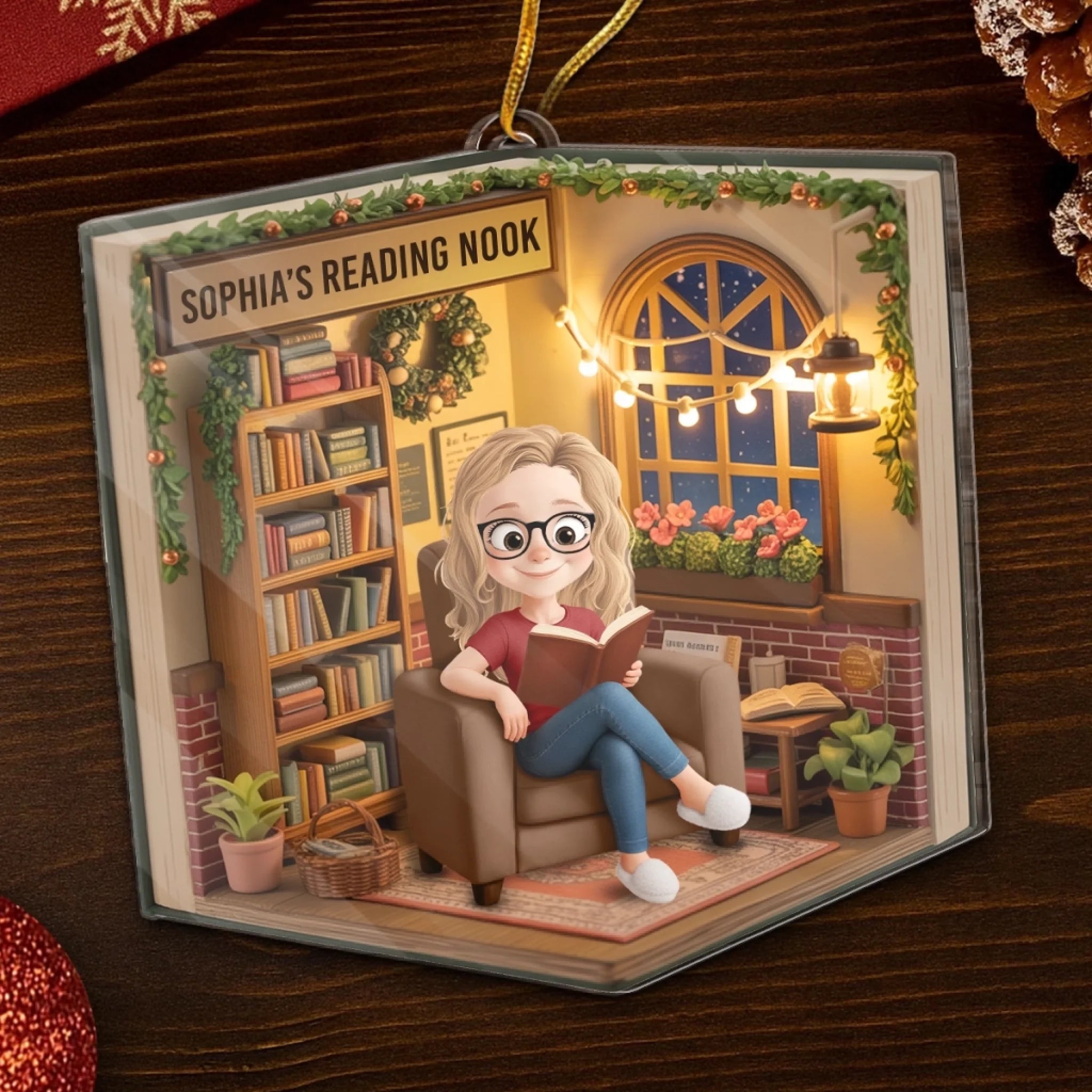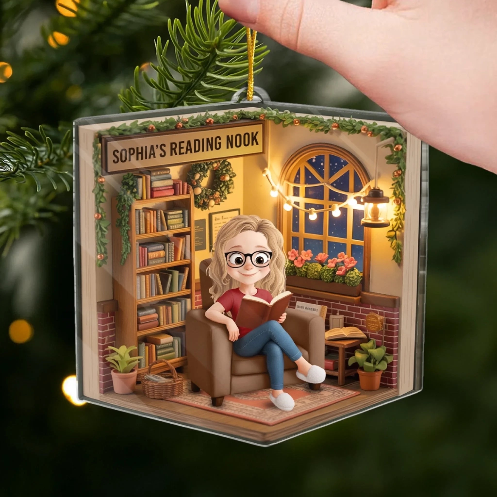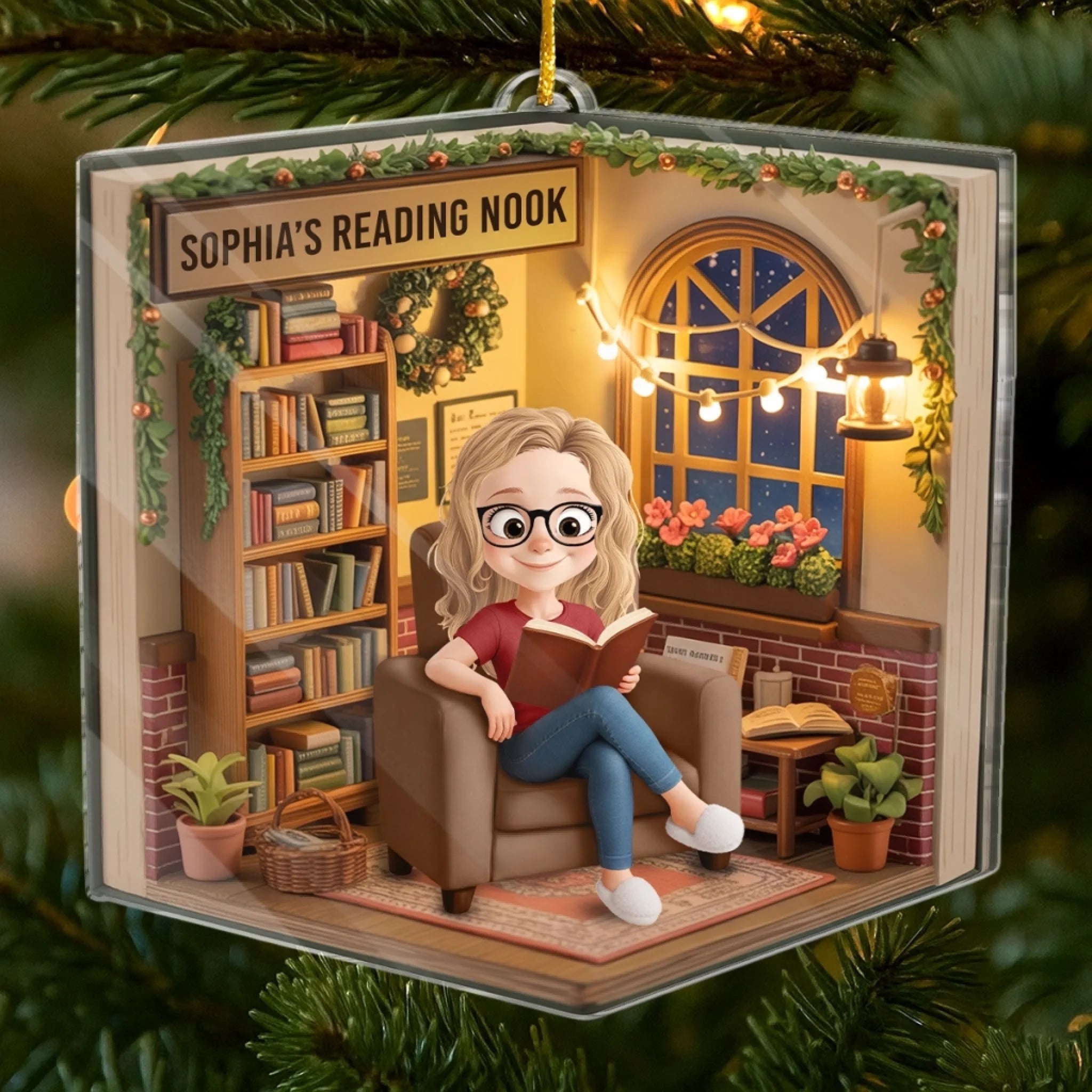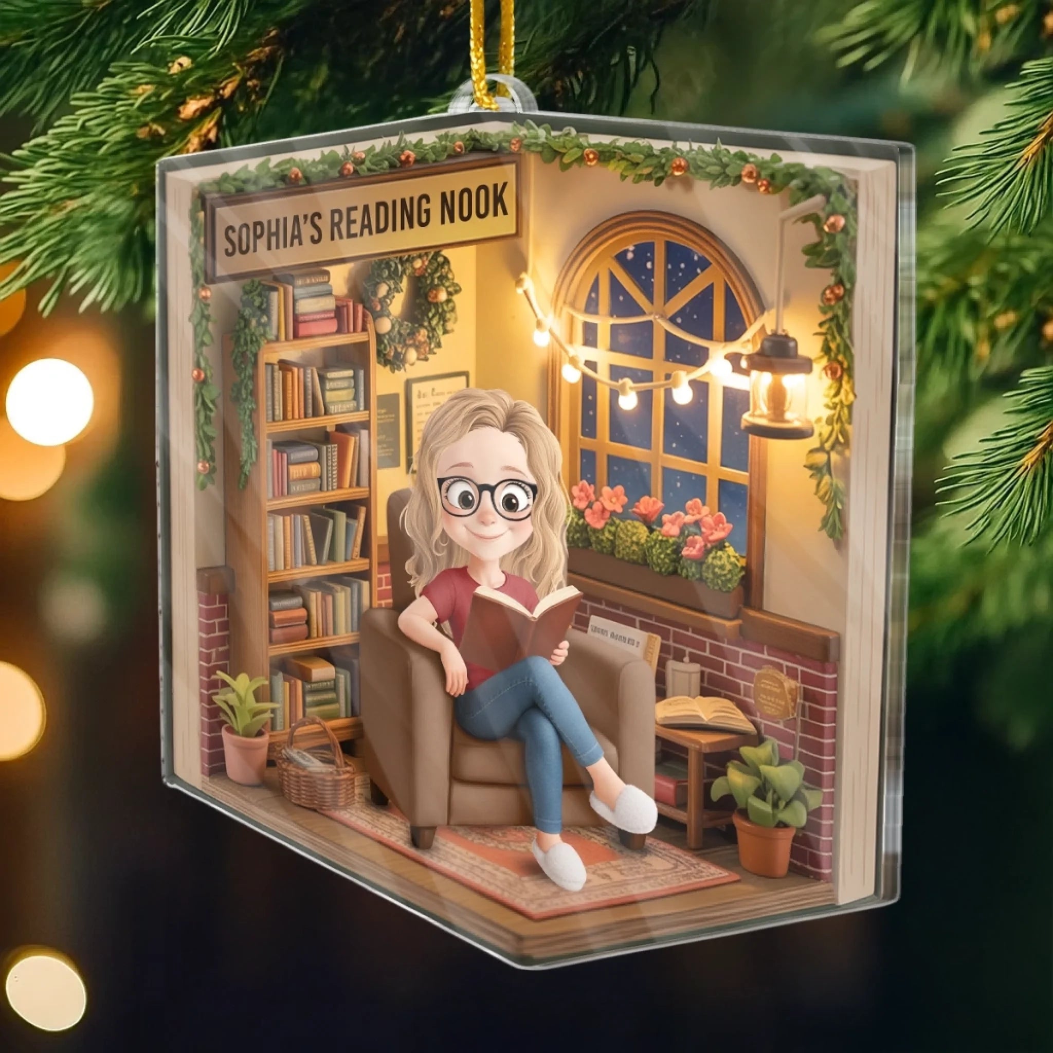 Custom Acrylic Ornament - Personalized Christmas Bookish Gifts For Book Lovers, Bookworms, Readers - This Nook Is My Happy Chapter