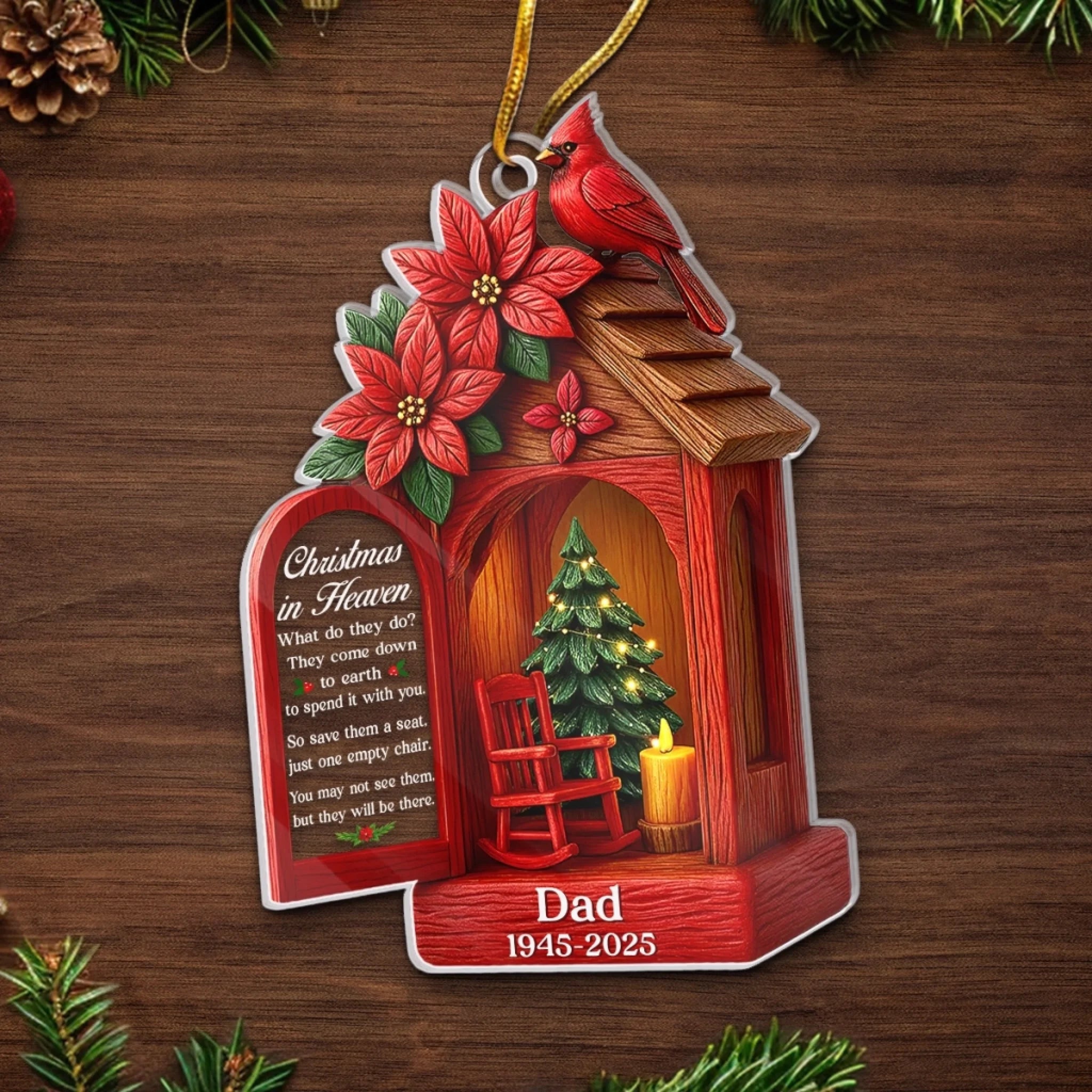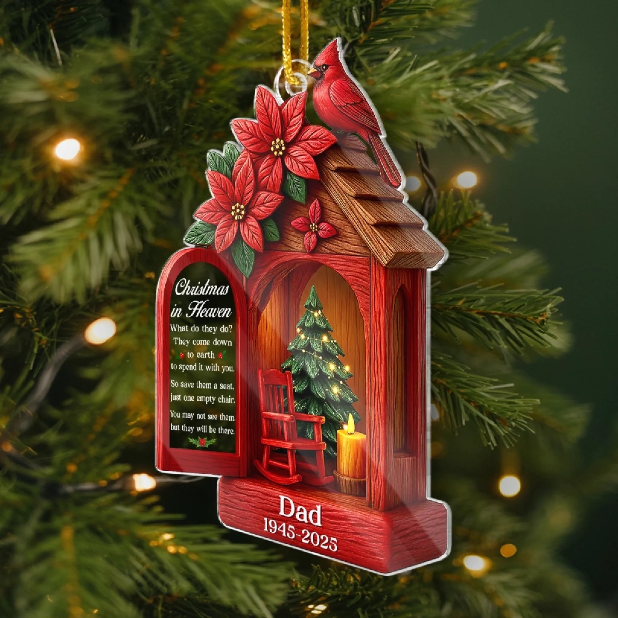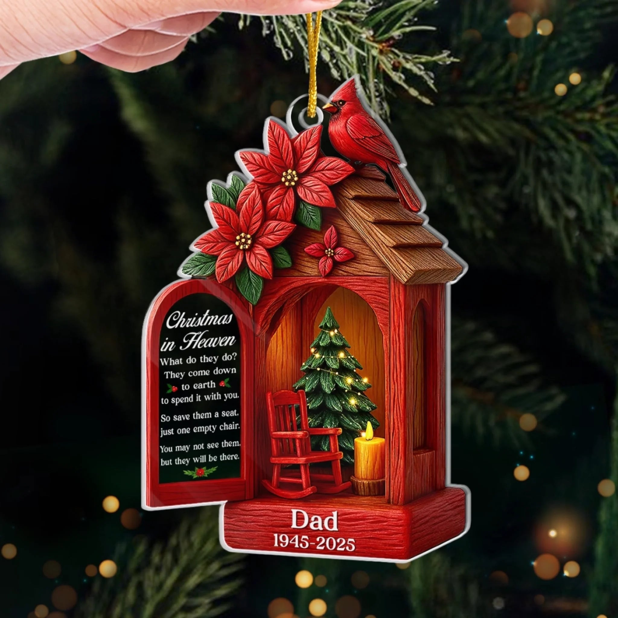 Custom Cardinal Acrylic Ornament - Personalized Christmas Memorial Sympathy Gifts For Loss Of Mom, Dad - Holding Your Love Forever Close