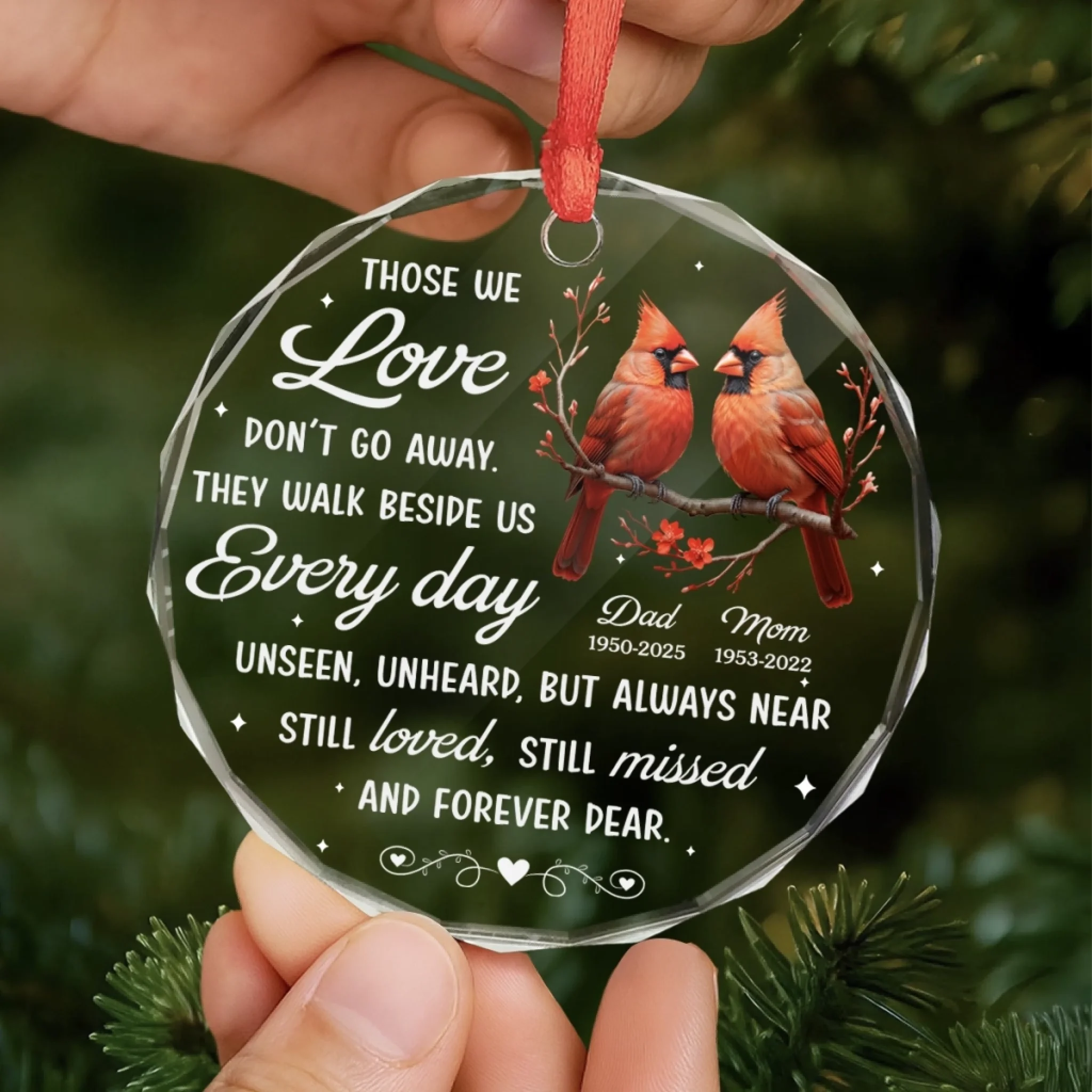 Custom Cardinal Circle Glass Ornament - Personalized Christmas Memorial Sympathy Gifts For Loss Of Mom, Dad - Heaven Is Not Far