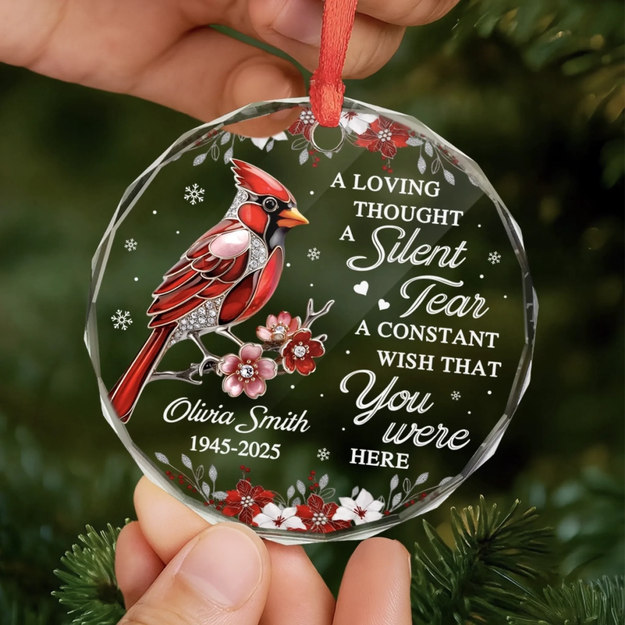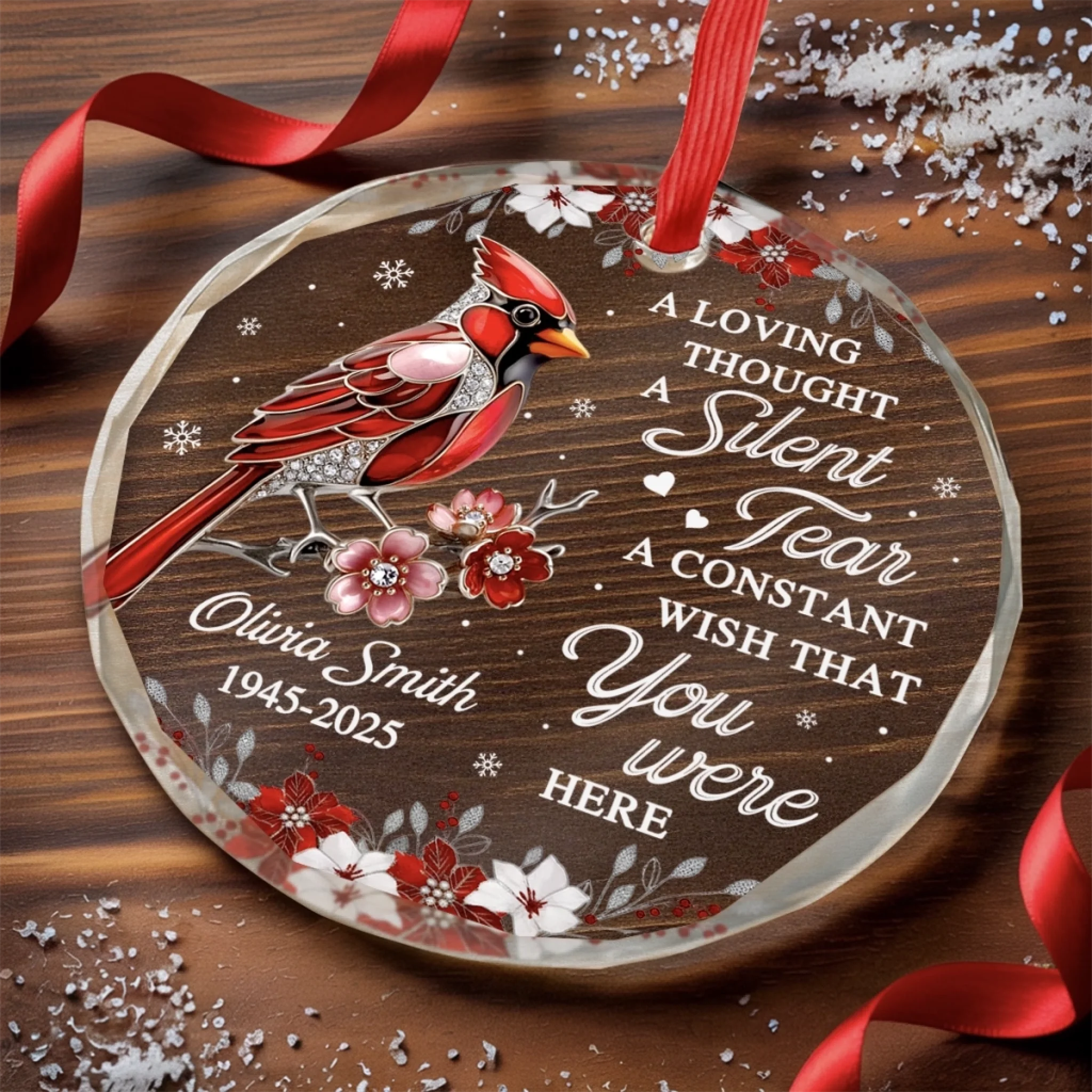 Custom Circle Glass Ornament - Personalized Christmas Memorial Sympathy Gifts For Loss Of Mom, Dad - A Visit From Heaven