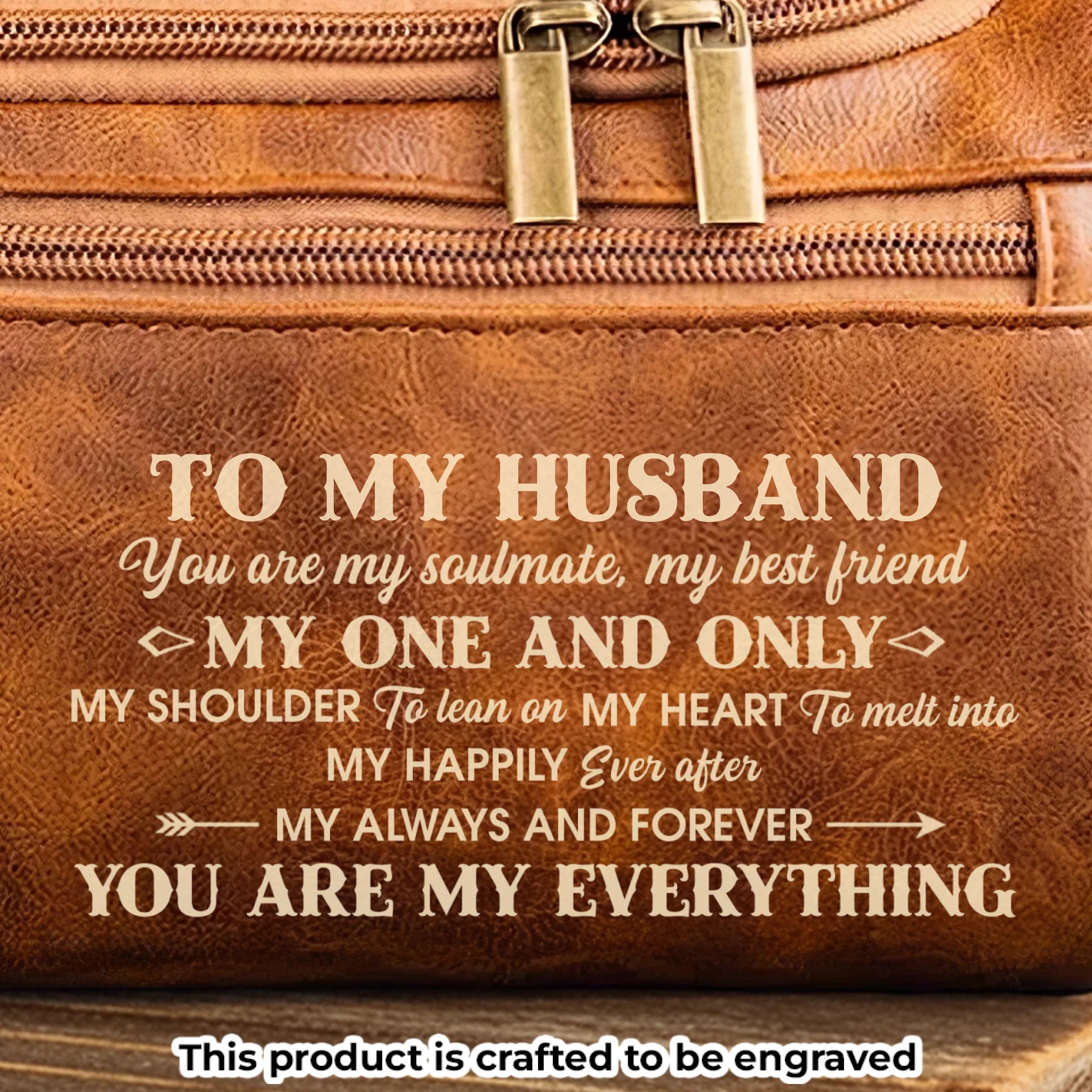 Custom Engraved Leather Toiletry Bag - Personalized Birthday Gifts For Husband - With You Life Feels Right