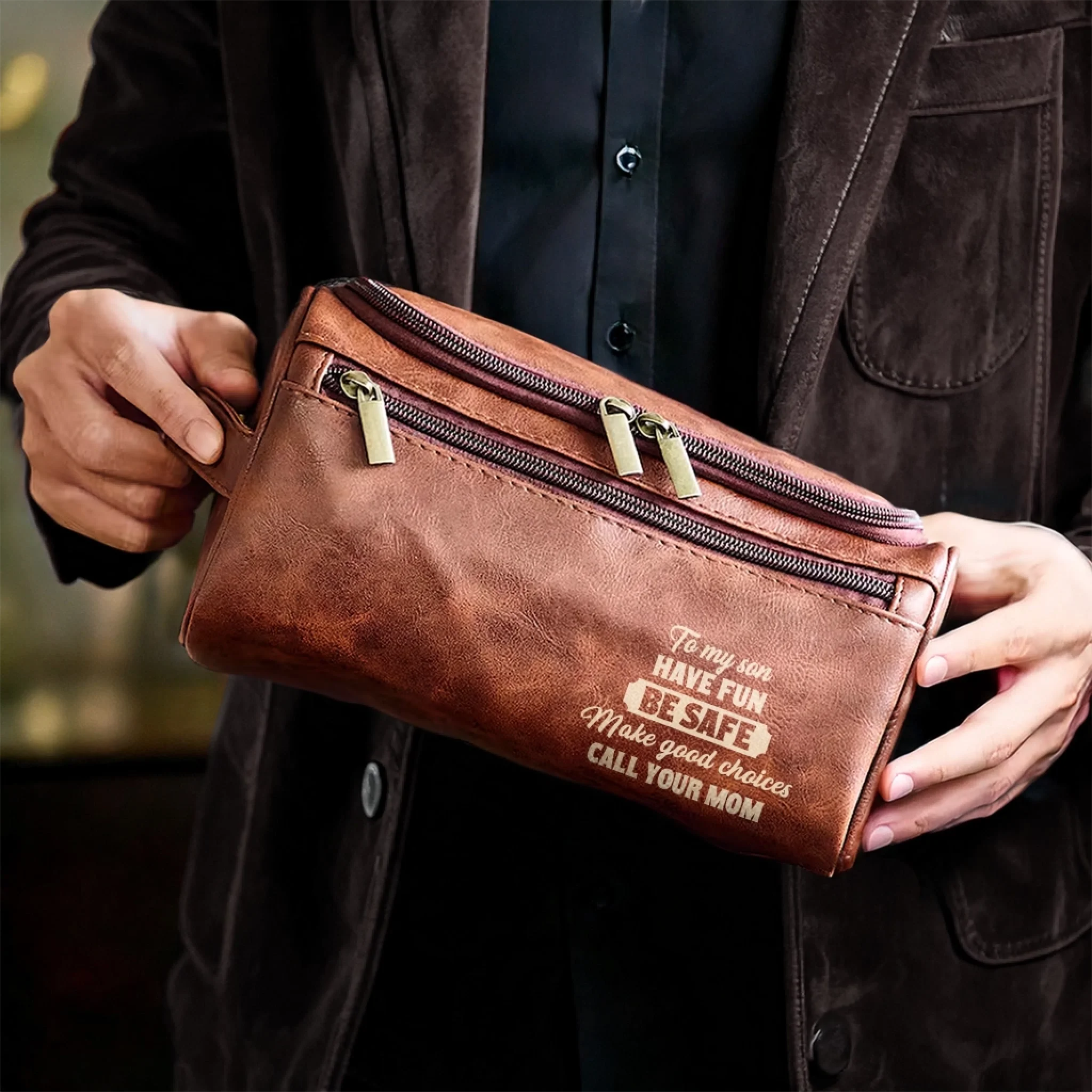 Custom Engraved Leather Toiletry Bag - Personalized Birthday Gifts For Son, Grandson - You Make Us Proud