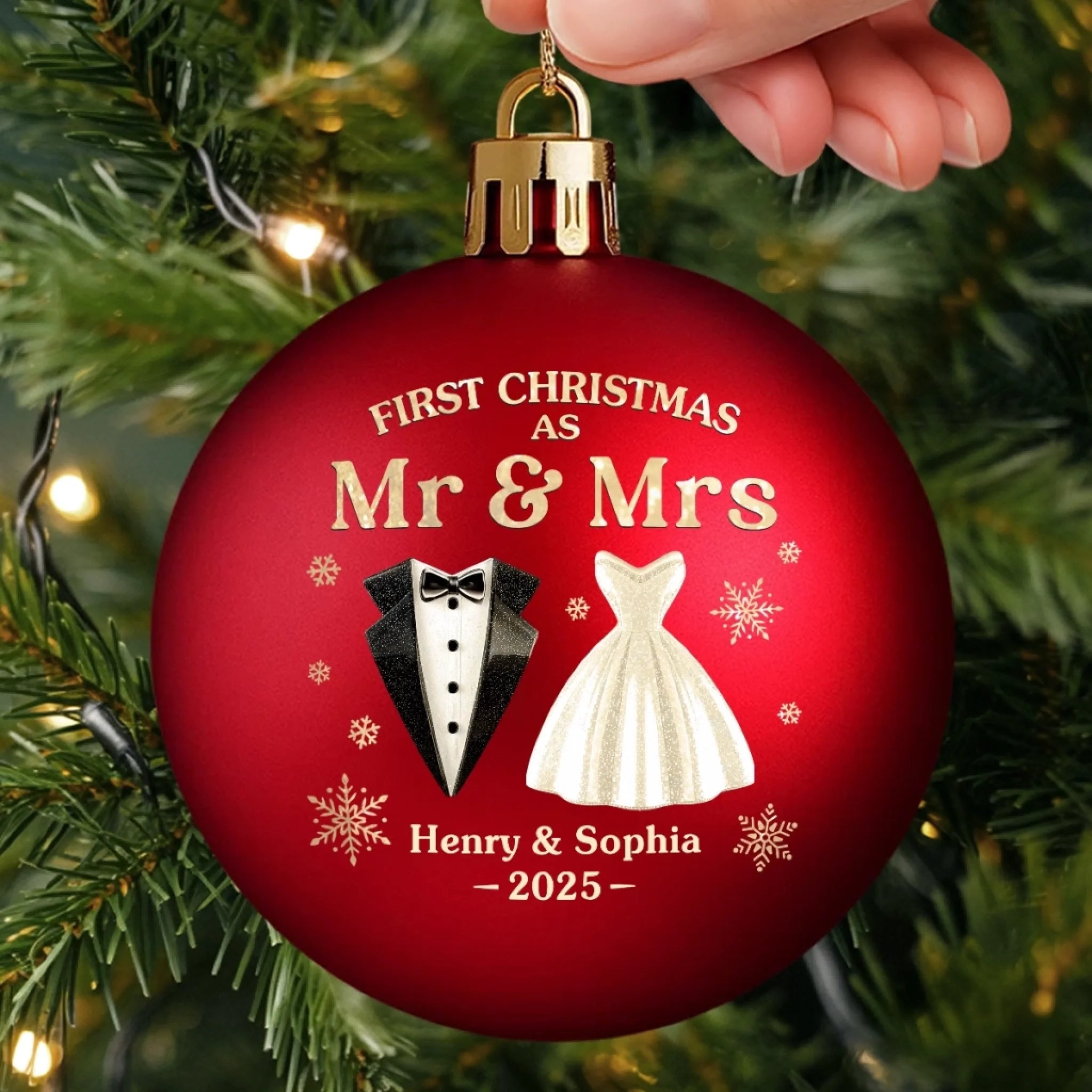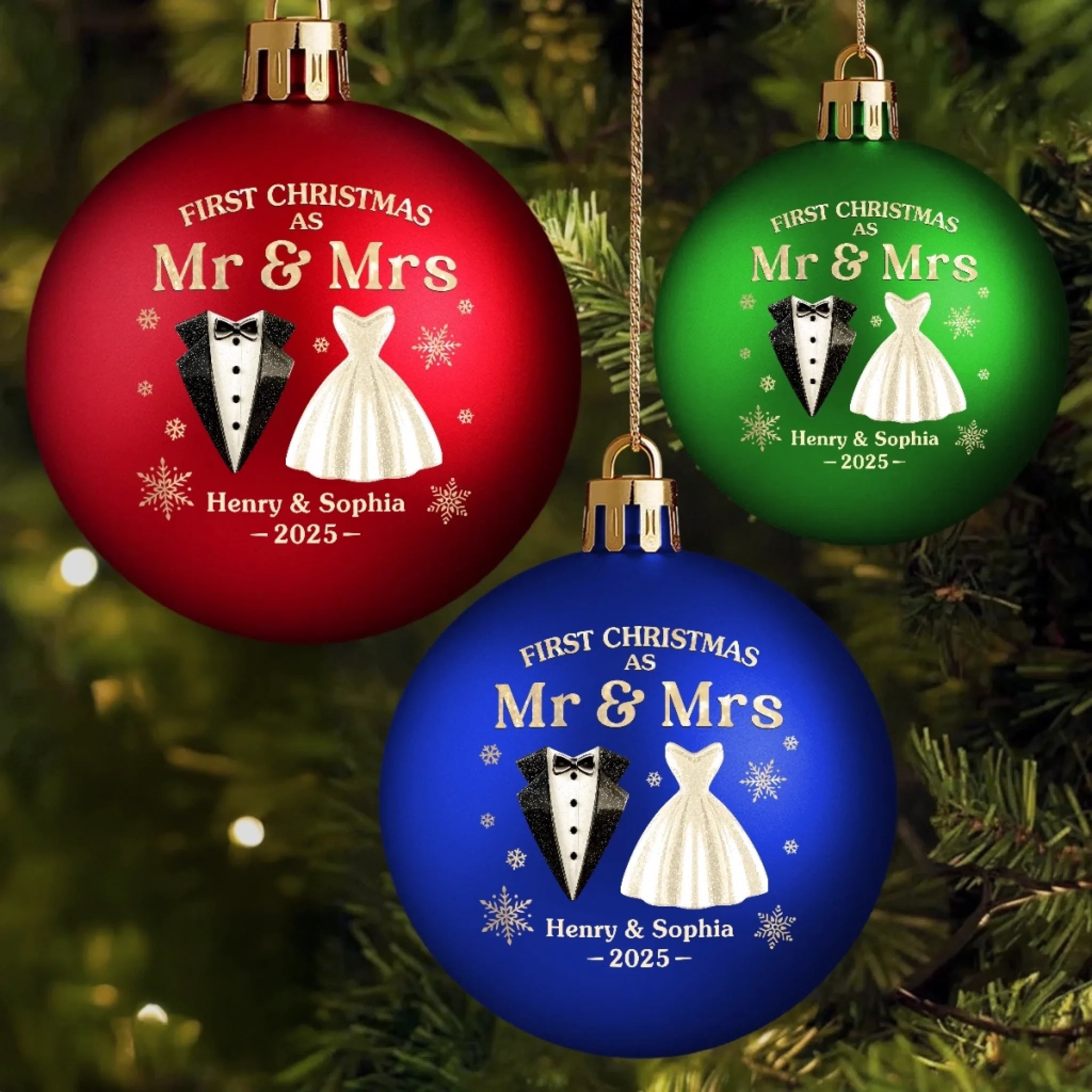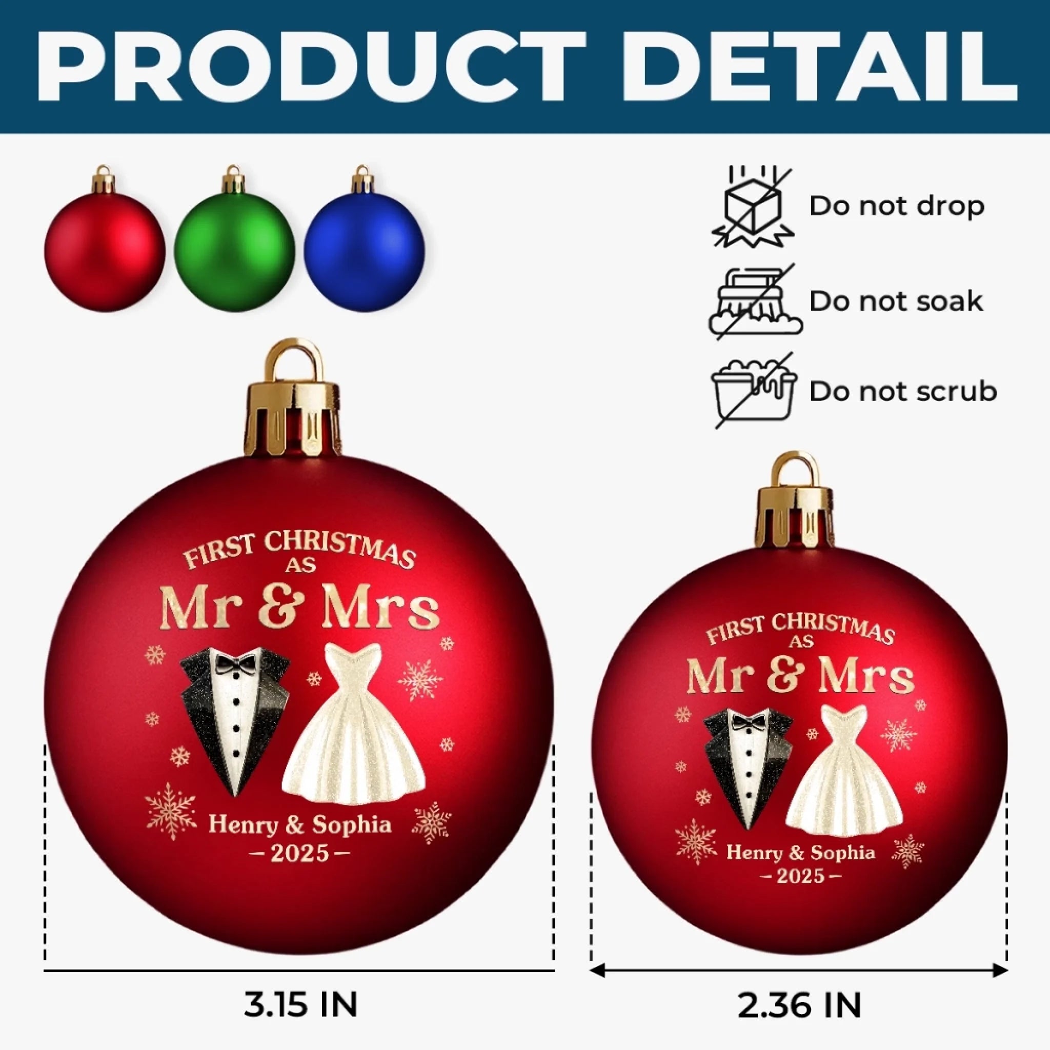 Custom First Christmas Colored Ball Ornament - Personalized Engaged Anniversary Christmas Wedding Gifts For Husband And Wife, Him And Her - Just Wed, Just Blessed