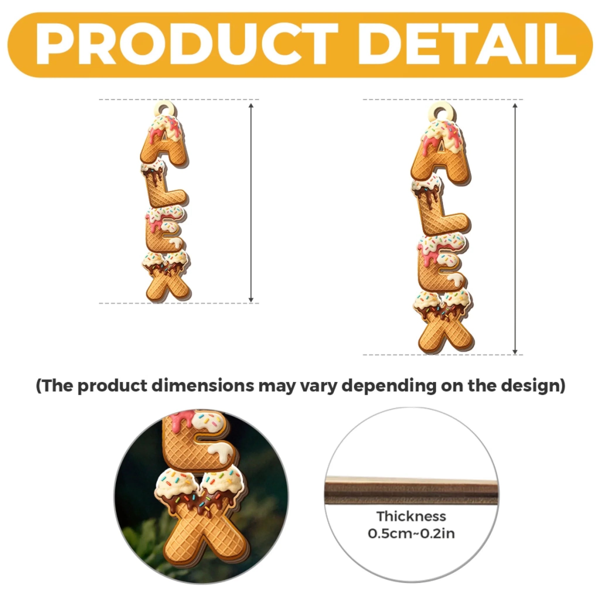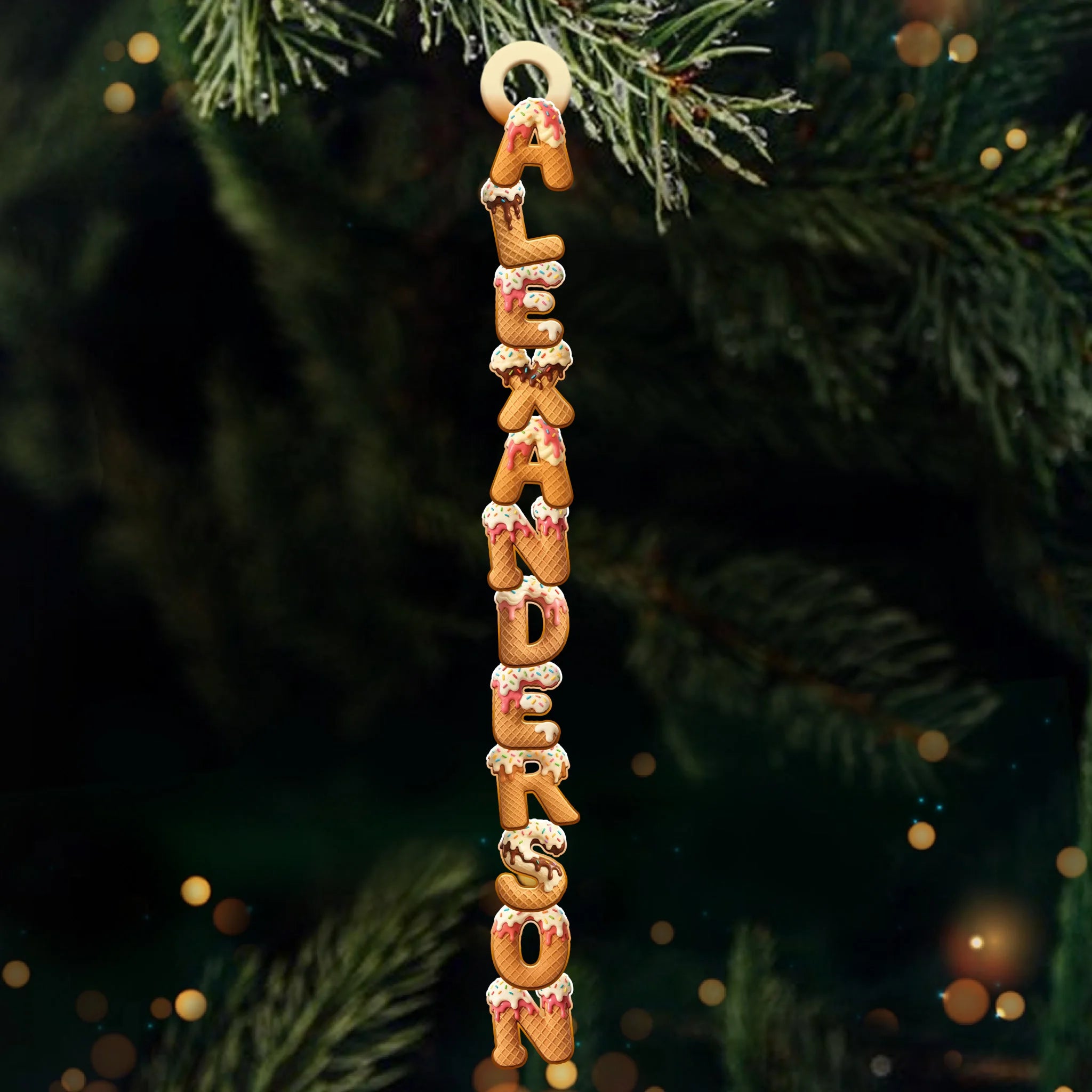 Custom Ice Cream Letter Wooden Ornament - Personalized Christmas Birthday Gifts For Mom, Dad, Brother, Sister, Kids - Love Frozen In Scoops