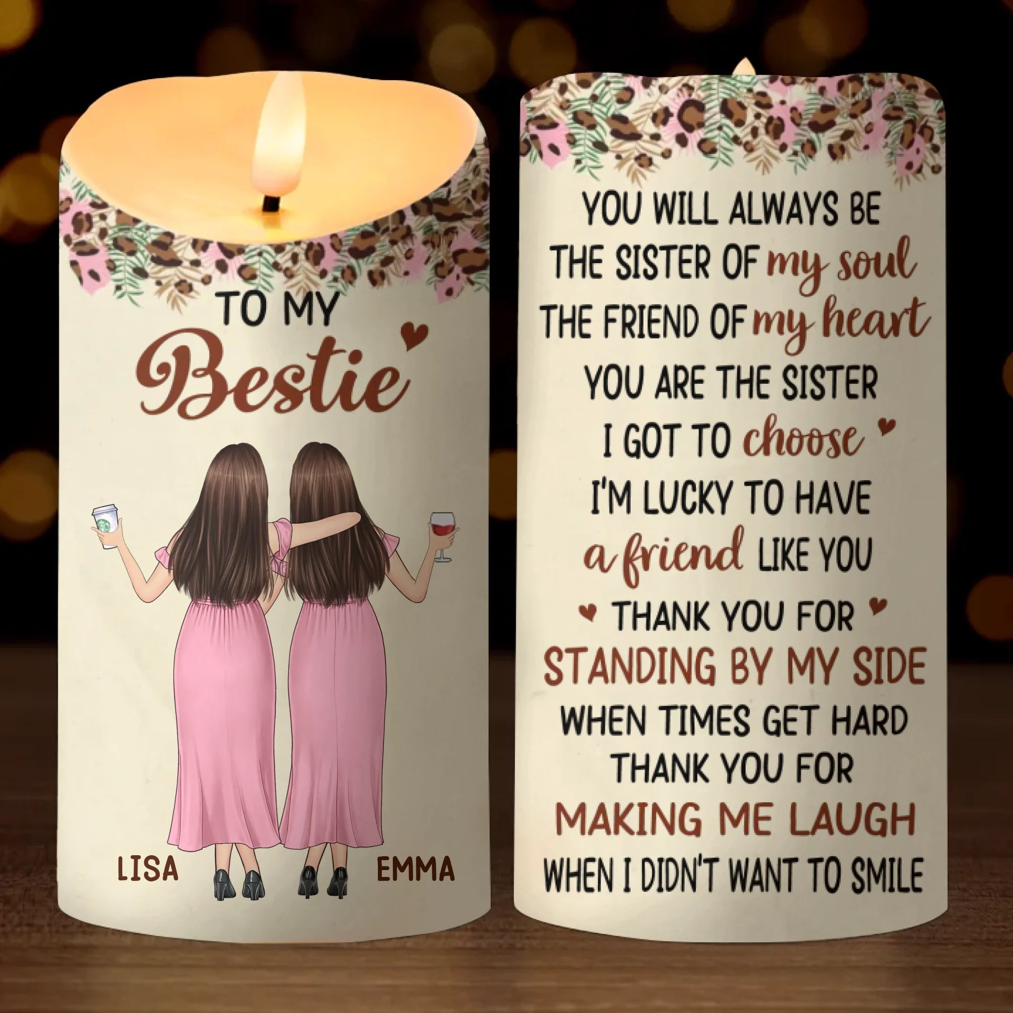 Custom LED Candle - Personalized Best Friend Birthday Gifts For Women, Besties, Sisters, BFF - Bestie Moments Last A Lifetime