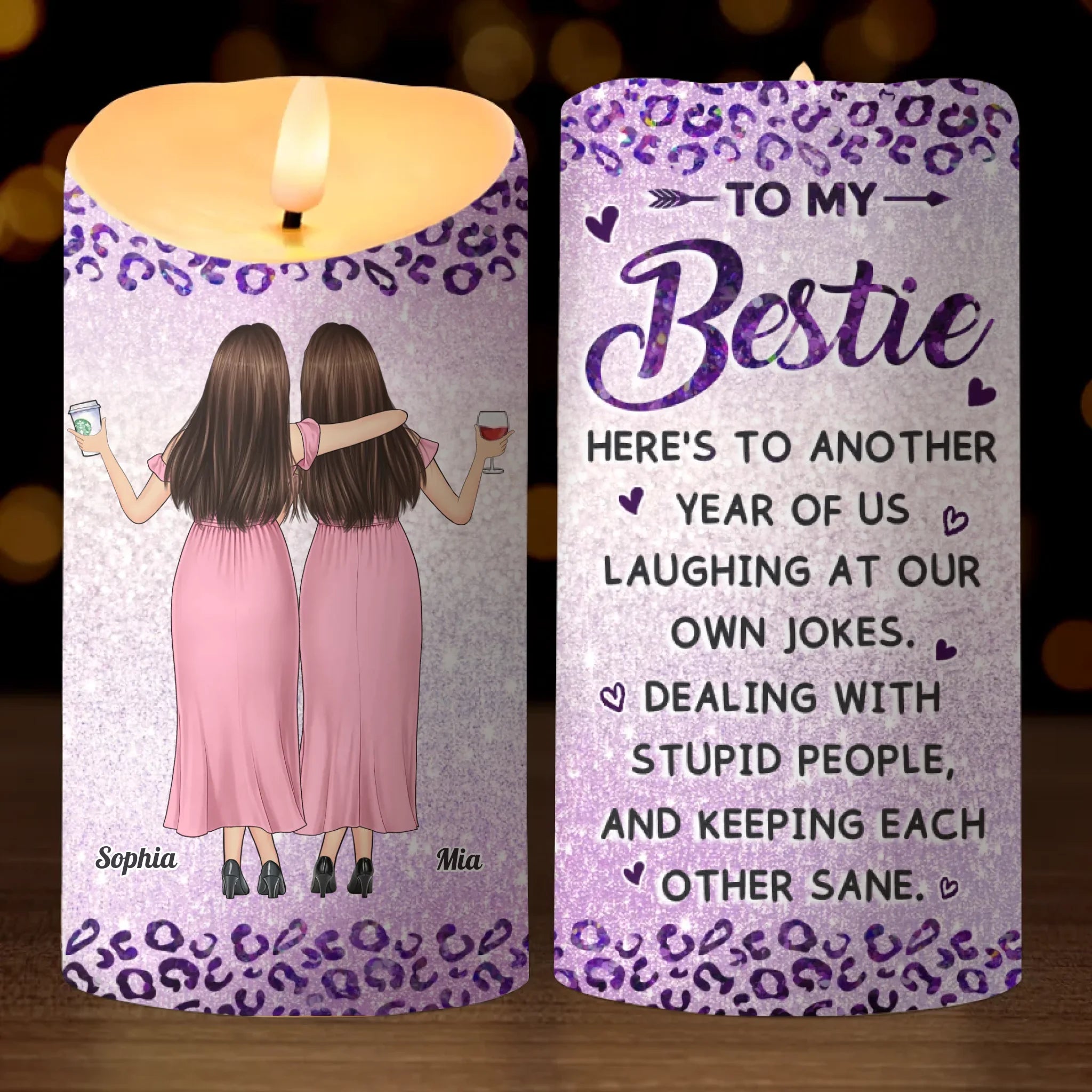 Custom LED Candle - Personalized Best Friend Birthday Gifts For Women, Besties, Sisters, BFF - Laughter Is Our Love Language