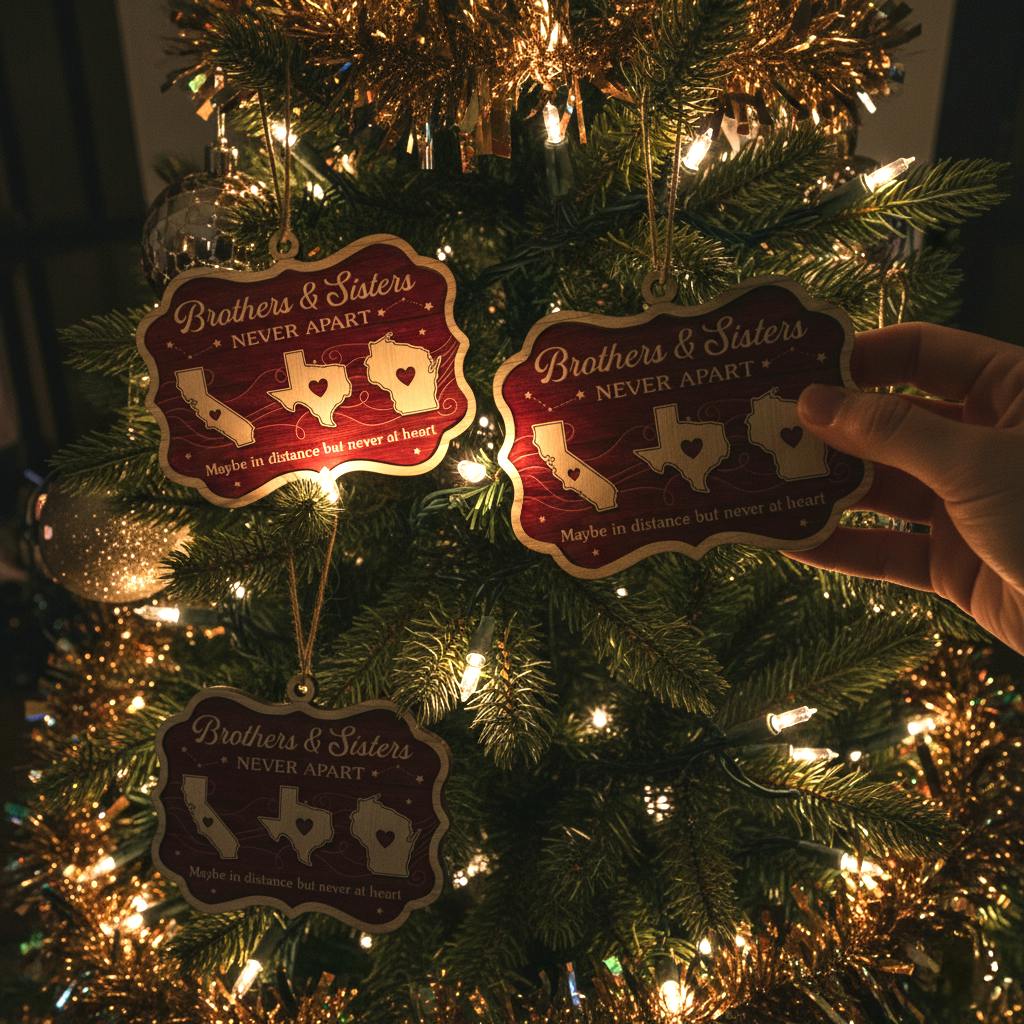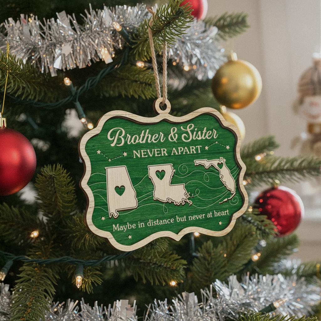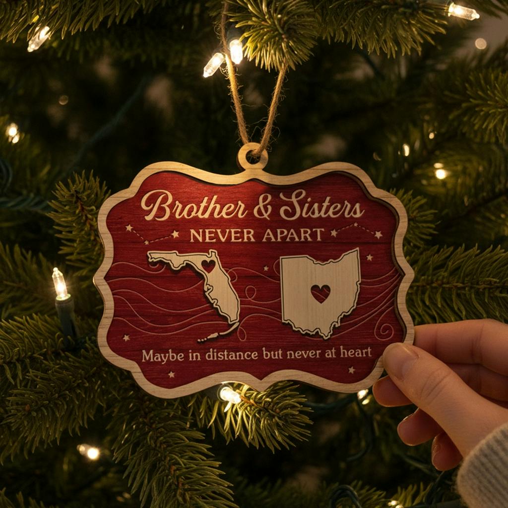 Custom Long Distance Wood Ornament - Personalized Christmas Birthday Gifts For Brother, Sister - Sibling Love Knows No Borders