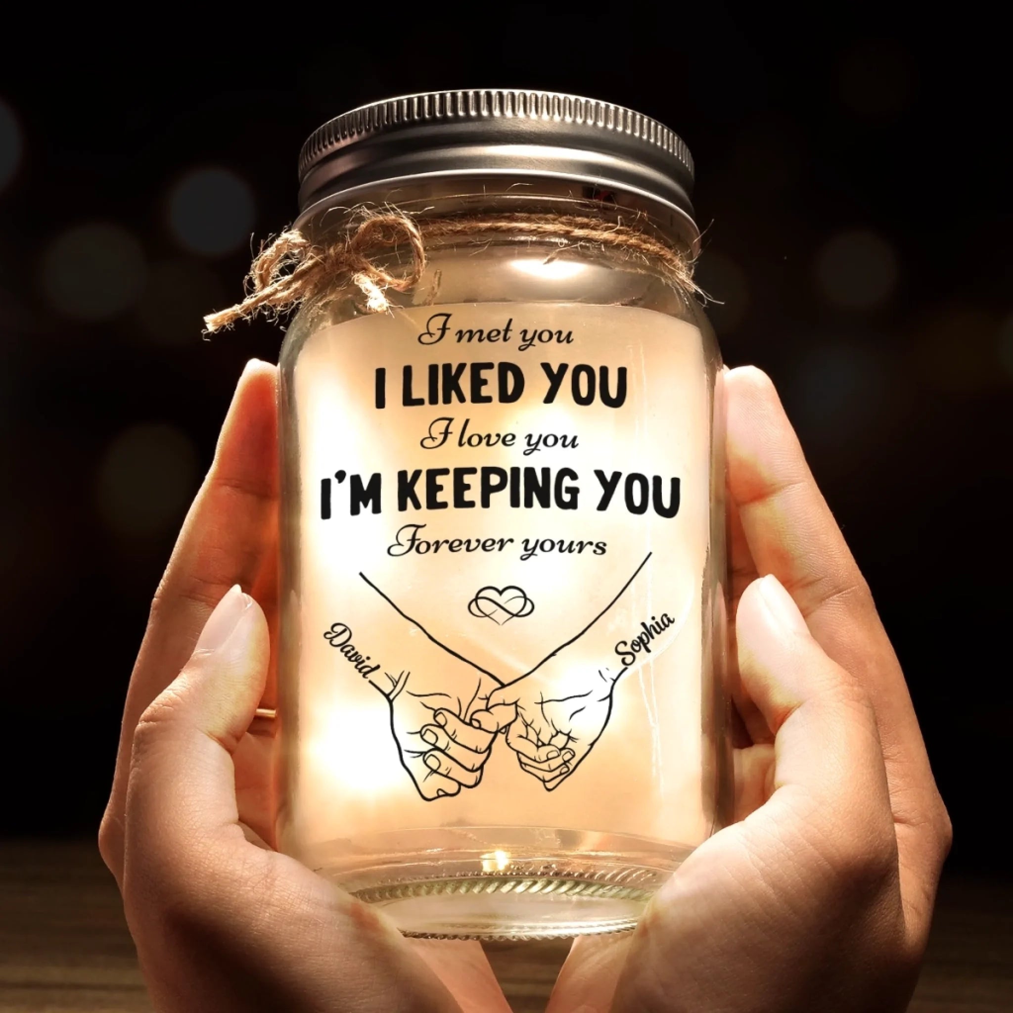 Custom Mason Jar Light - Personalized Anniversary Wedding Gifts For Husband And Wife, Him And Her - Love, Bottled And Glowing