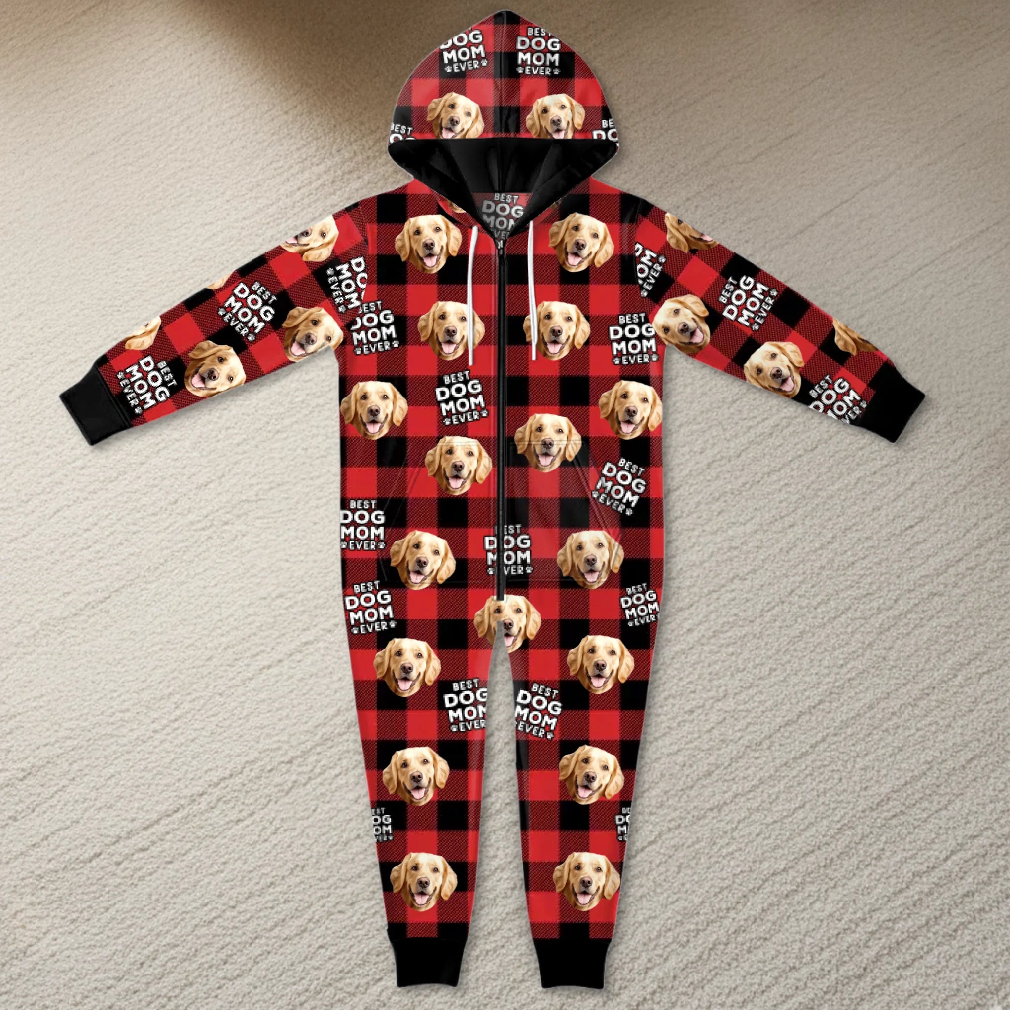 Custom Photo Adult Onesie - Personalized Christmas Birthday Gifts For Dog Cat Lovers, Dog Dad And Mom, Cat Owners - Fleece Navidad