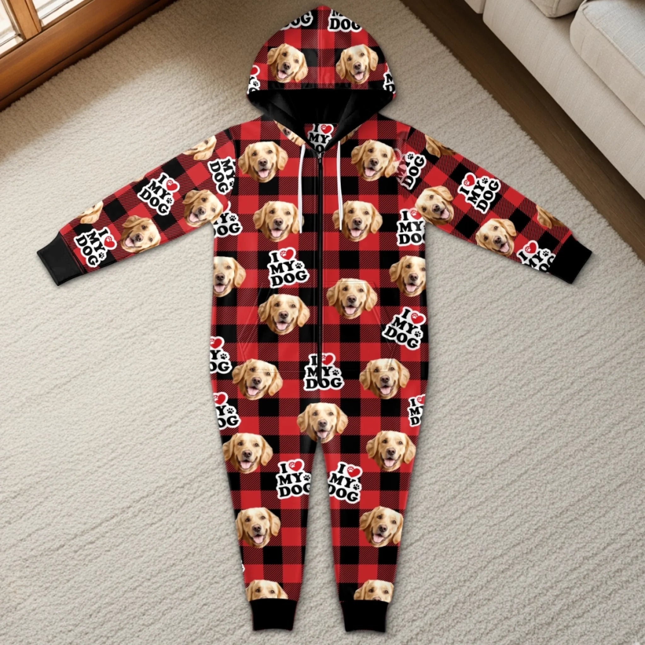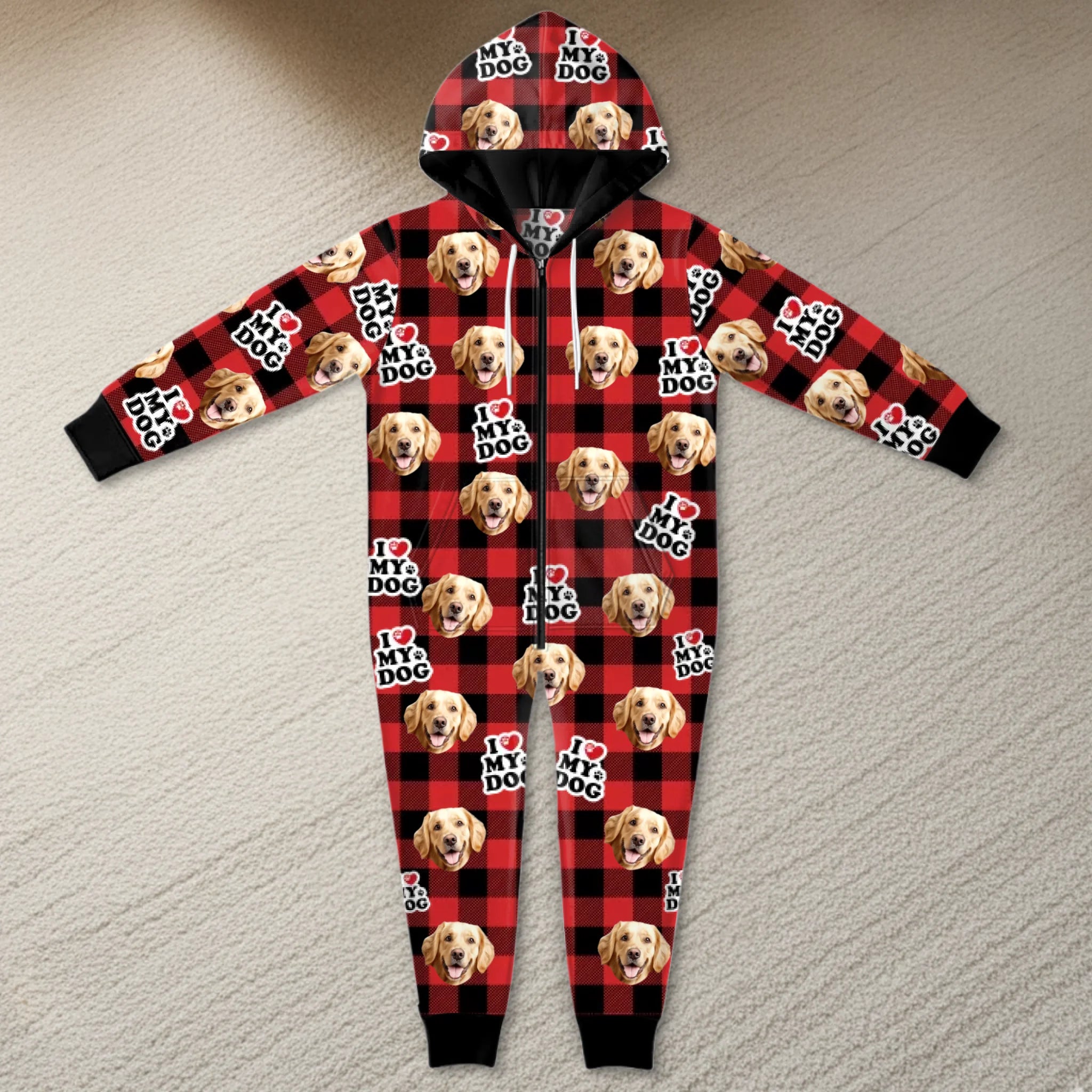 Custom Photo Adult Onesie - Personalized Christmas Birthday Gifts For Dog Cat Lovers, Dog Dad And Mom, Cat Owners - Just Me And My Furry Therapist
