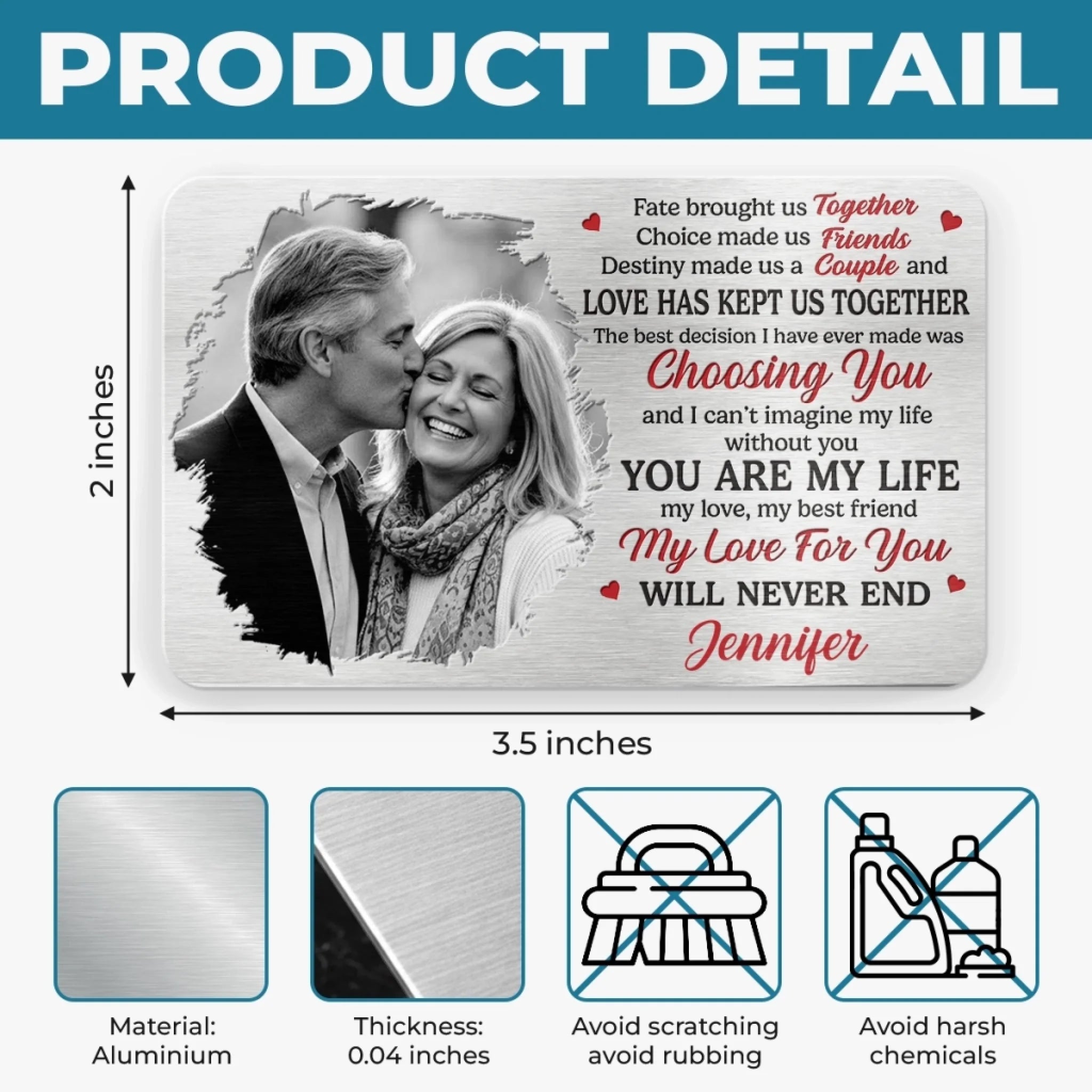 This personalized wallet card is a meaningful way to keep a memory, moment or person close to you at all times. It has perfect size for keeping in a wallet or purse, so your lovely message can be carried by your loved one wherever they go as a reminder of how much that important they means to you. This sentimental keepsake is perfect for any occasion.