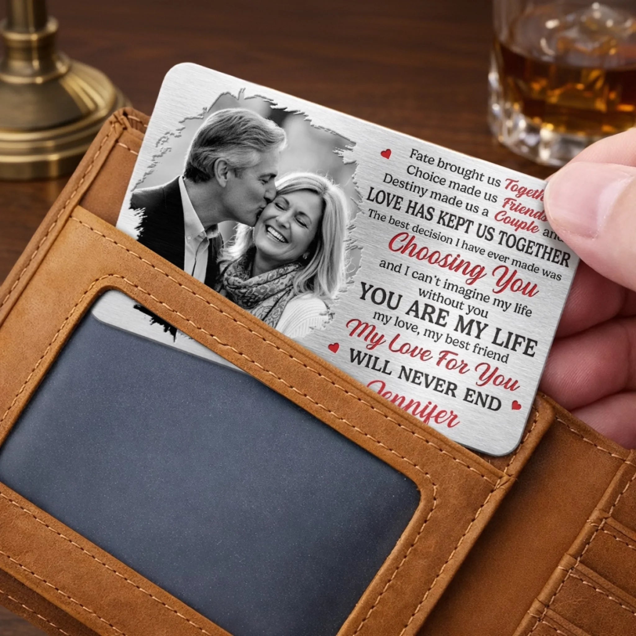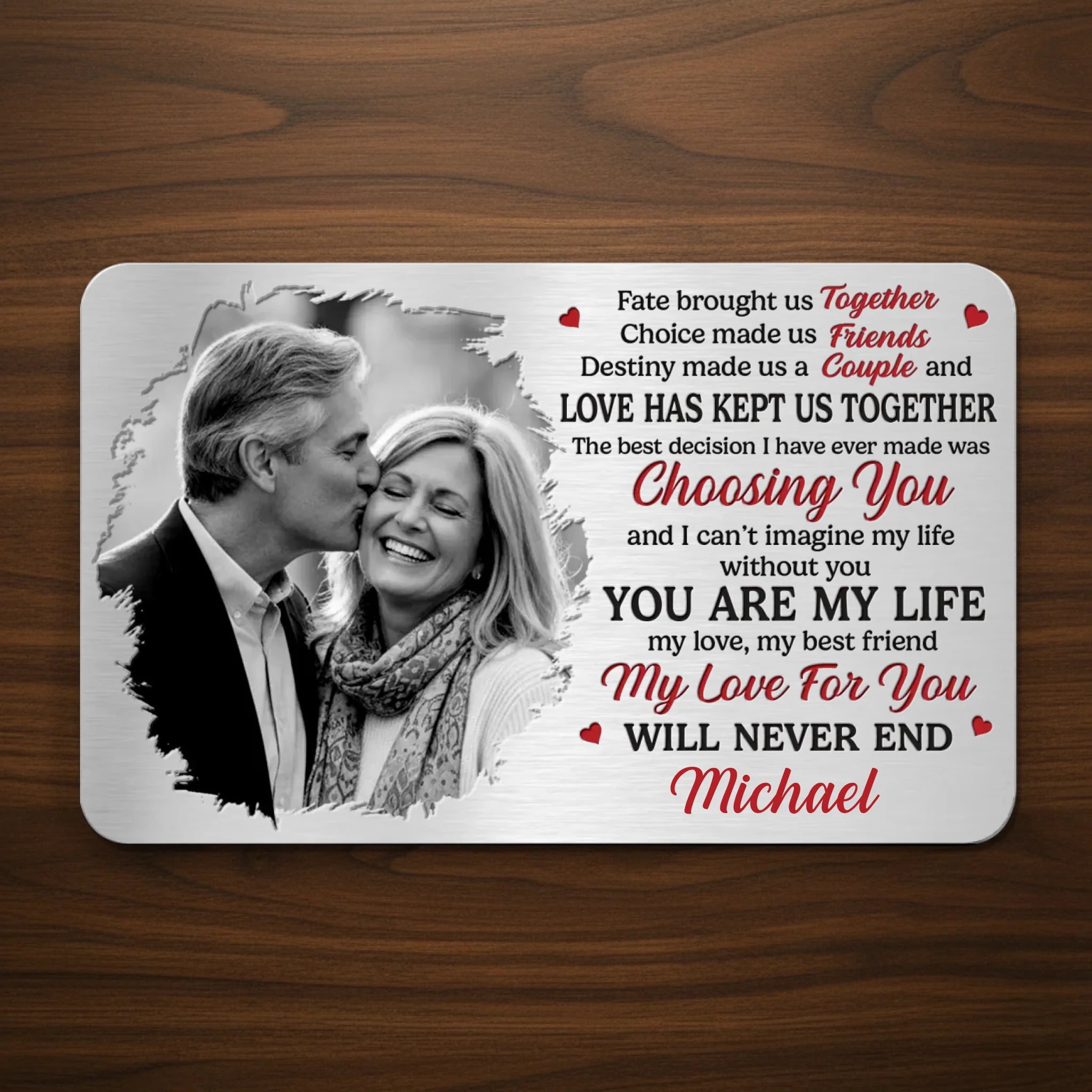 Custom Photo Aluminum Wallet Card - Personalized Anniversary Wedding Gifts For Husband And Wife, Him And Her - Forever Starts With Us