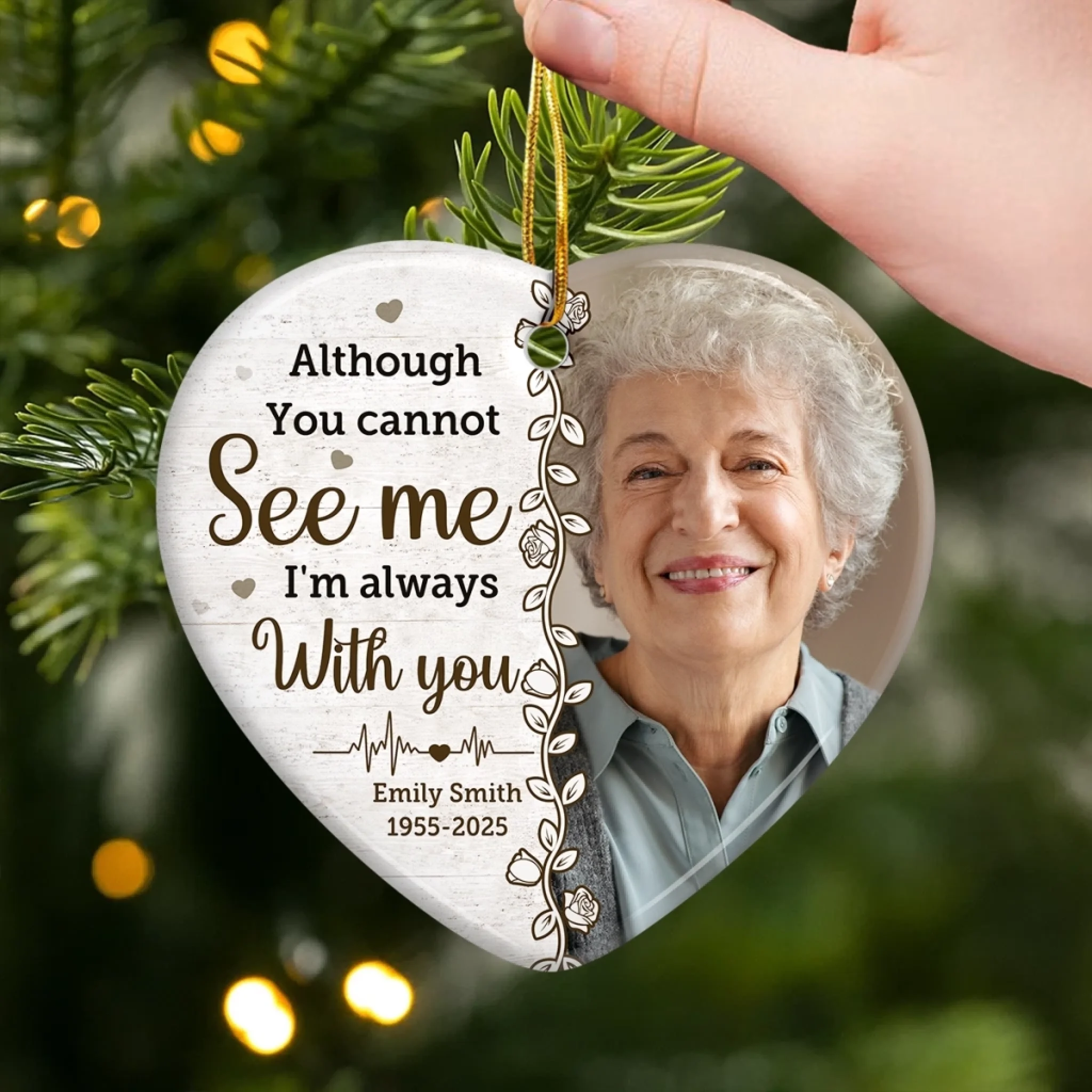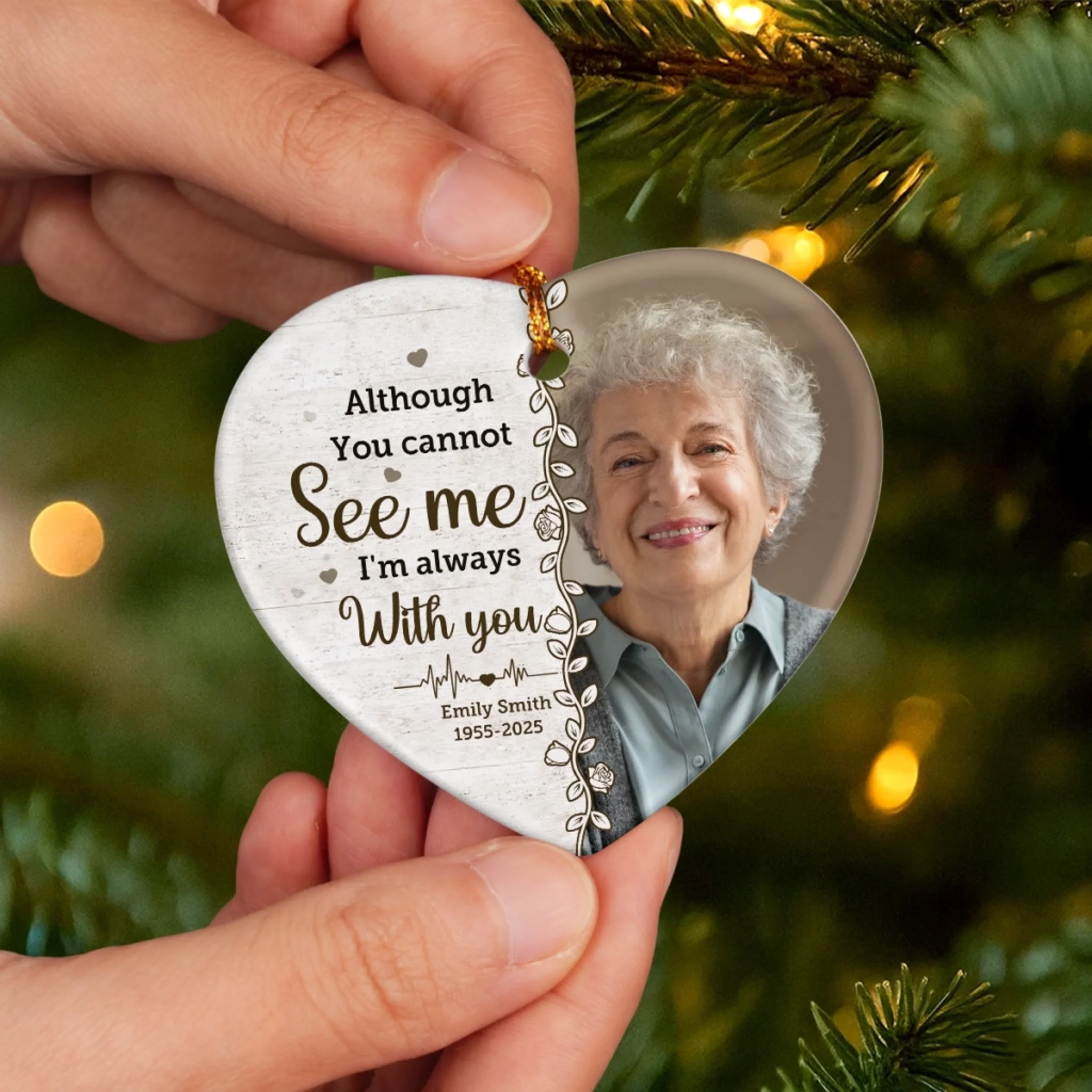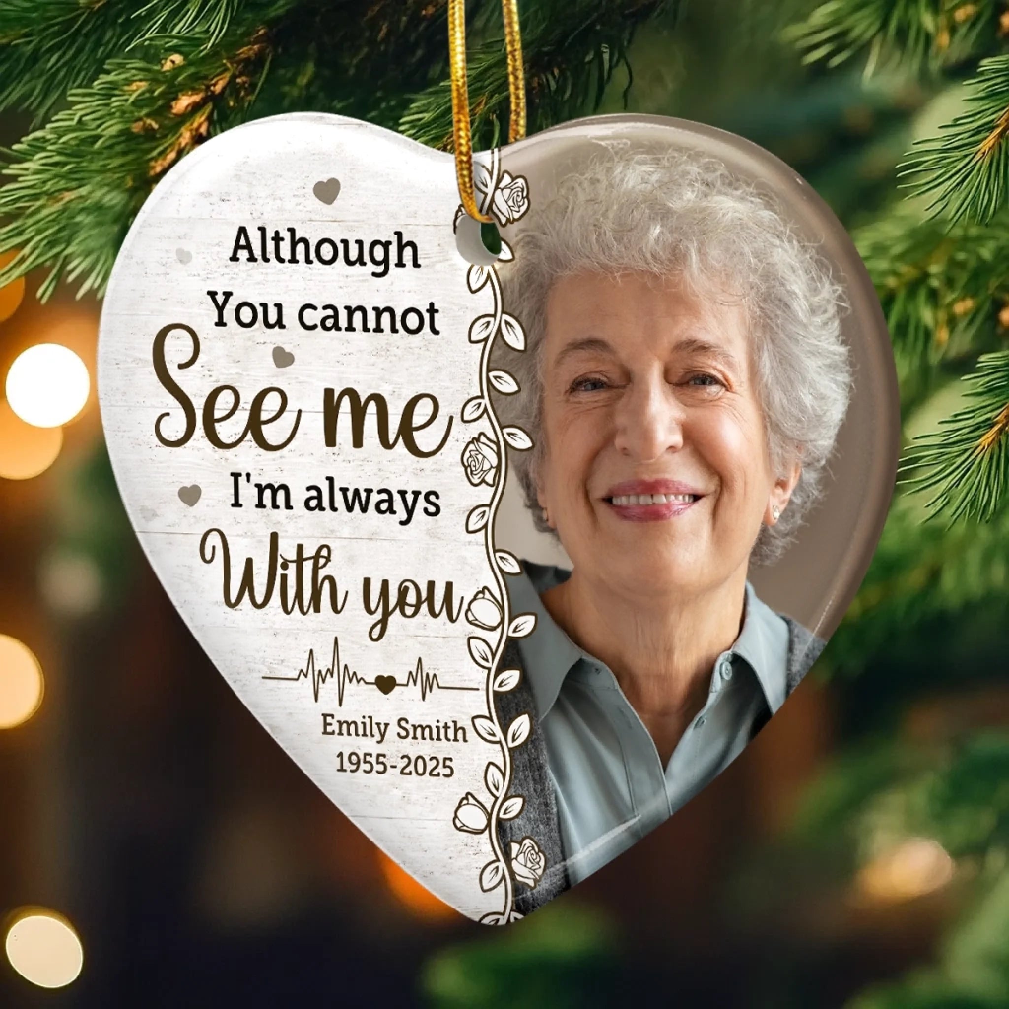 Custom Photo Ceramic Ornament - Personalized Christmas Memorial Sympathy Gifts For Loss Of Mom, Dad - Your Light Stays With Me