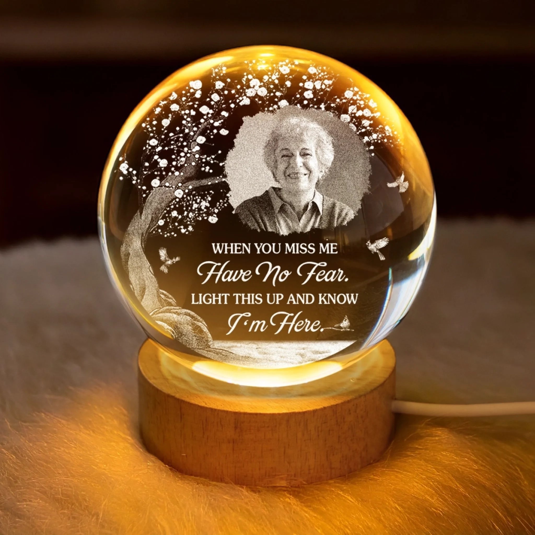 This crystal globe lamp features a beautifully crafted 3D engraving illuminated by soft LED lighting. A perfect blend of aesthetics and functionality, this crystal globe lamp enhances any space with its soft, ambient glow. This is the perfect gift for anyone, suitable for all occasions: birthdays, holidays, anniversaries, graduations, Valentine's Day, Mother's Day, Father's Day, and just because! Whether for friends, family, or that special someone, this versatile gift is guaranteed to bring joy and make lasting memories.