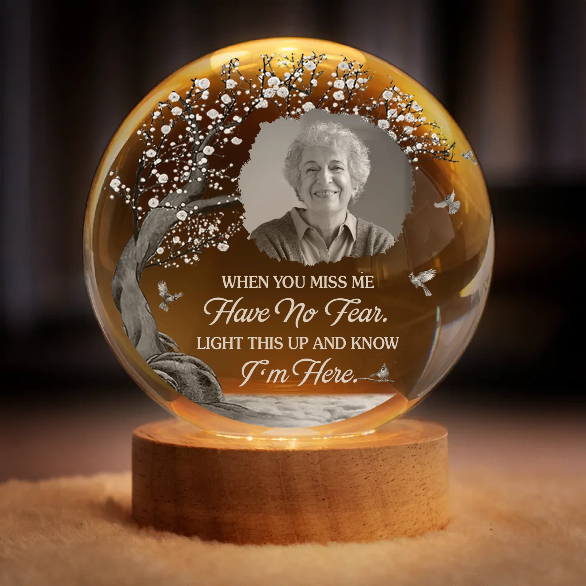 Custom Photo Crystal Globe Lamp - Personalized Memorial Sympathy Gifts For Loss Of Mom, Dad - Loved Beyond This Life
