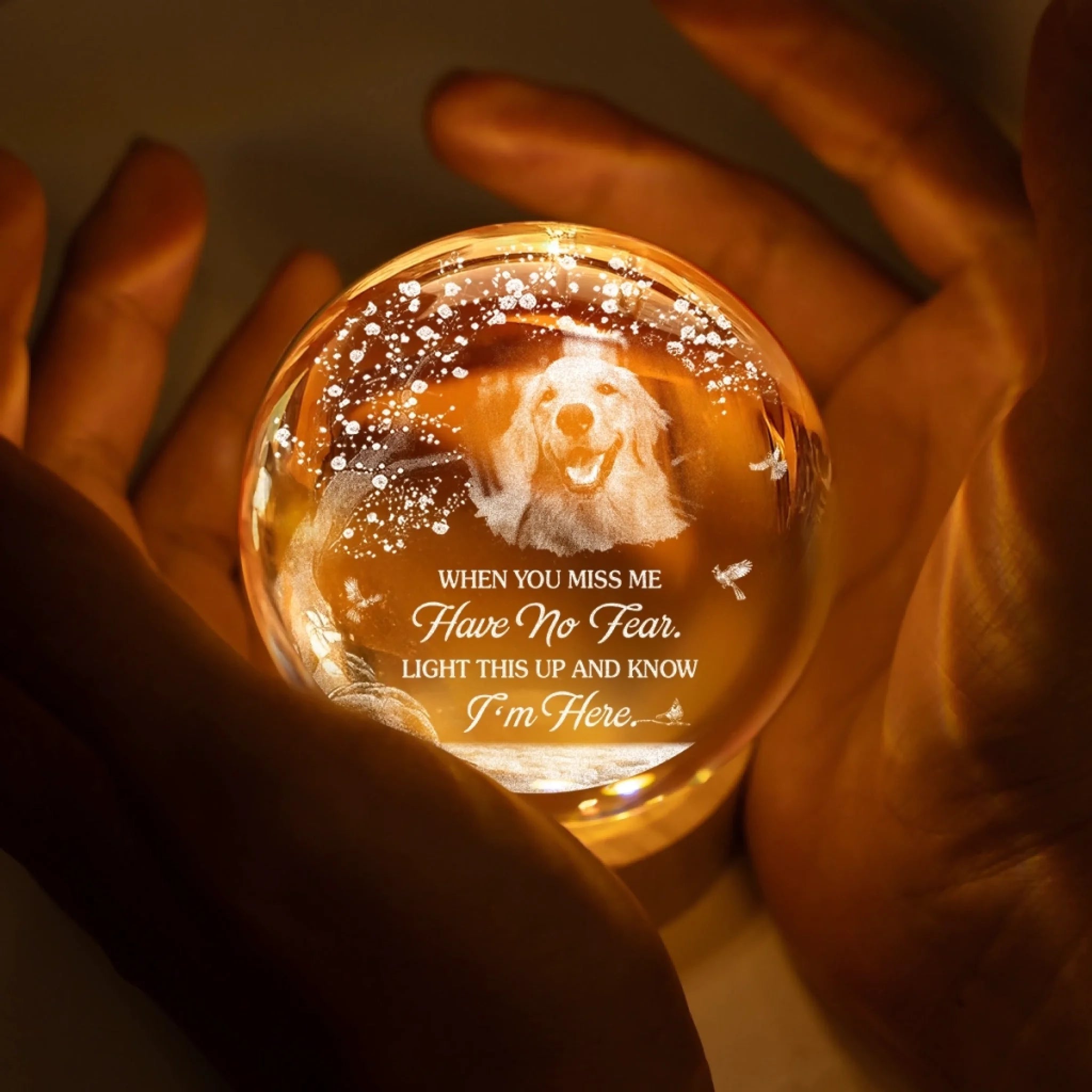 Custom Photo Crystal Globe Lamp - Personalized Pet Memorial Sympathy Gifts For Dogs, Cats - Gone Yet Always Near