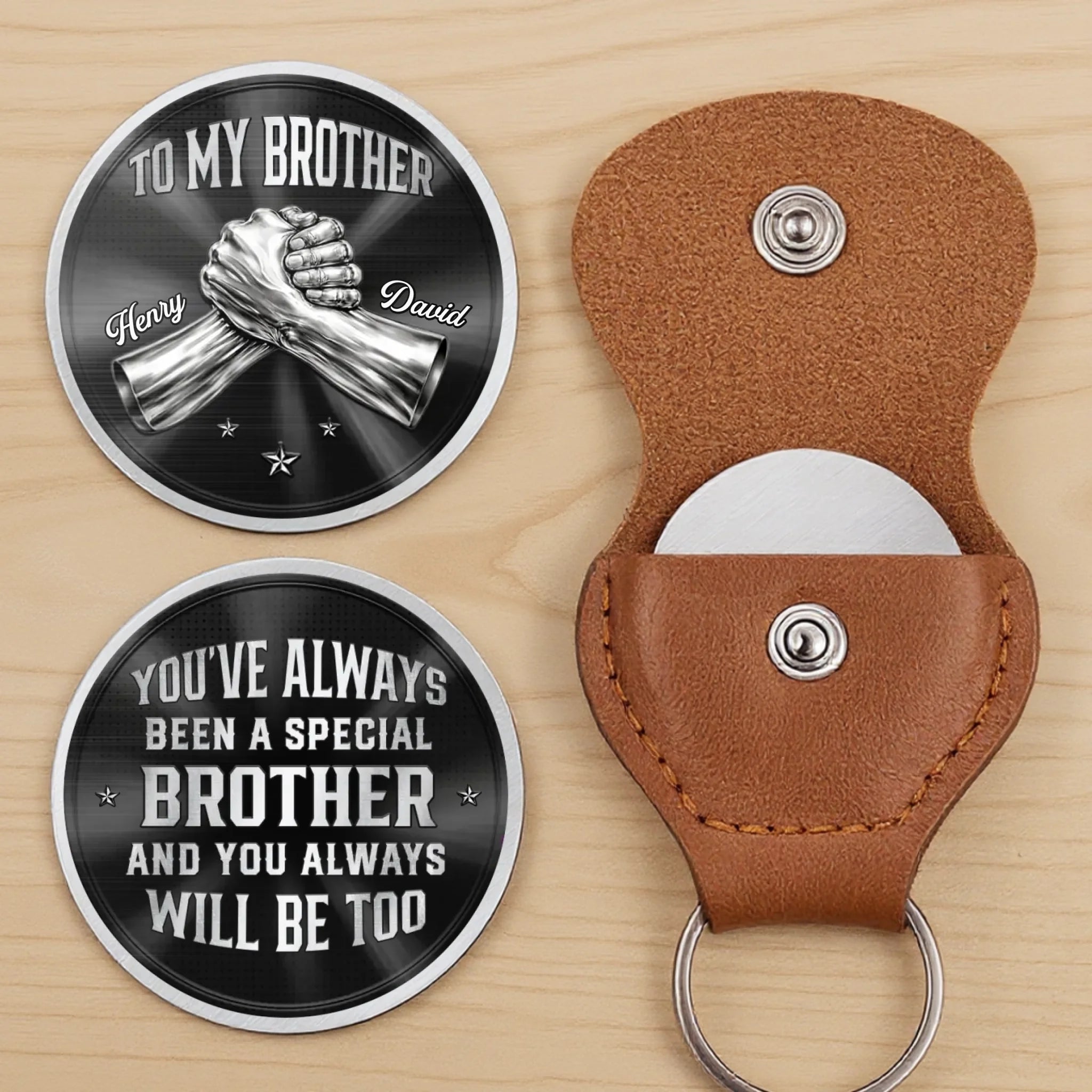 • Packaging: A stainless steel token and a PU leather pocket included.