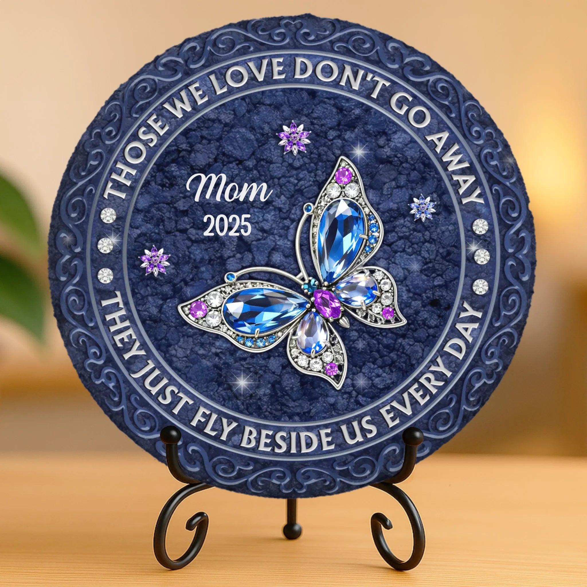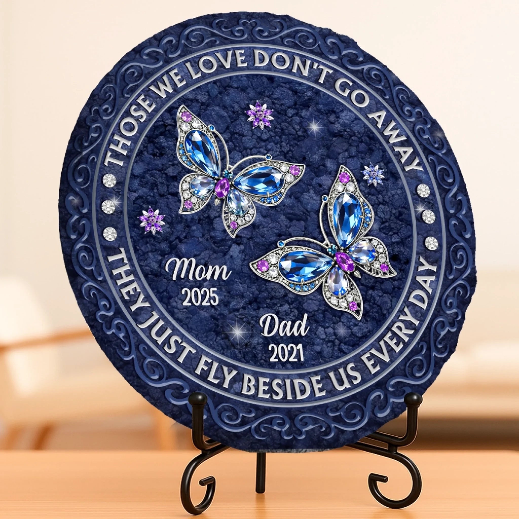 Custom Round Shaped Stone With Stand - Personalized Memorial Sympathy Gifts For Loss Of Mom, Dad - Always In Our Hearts