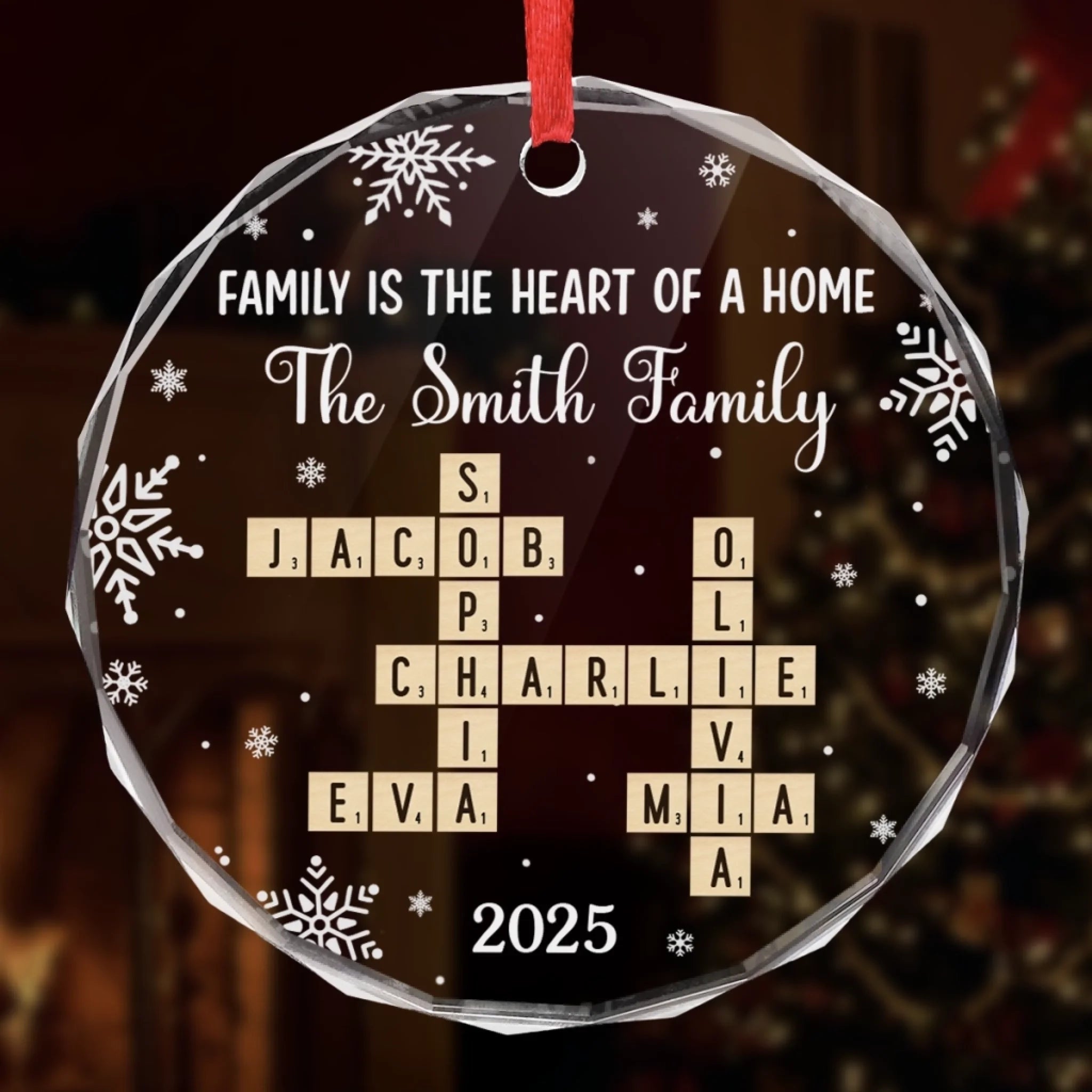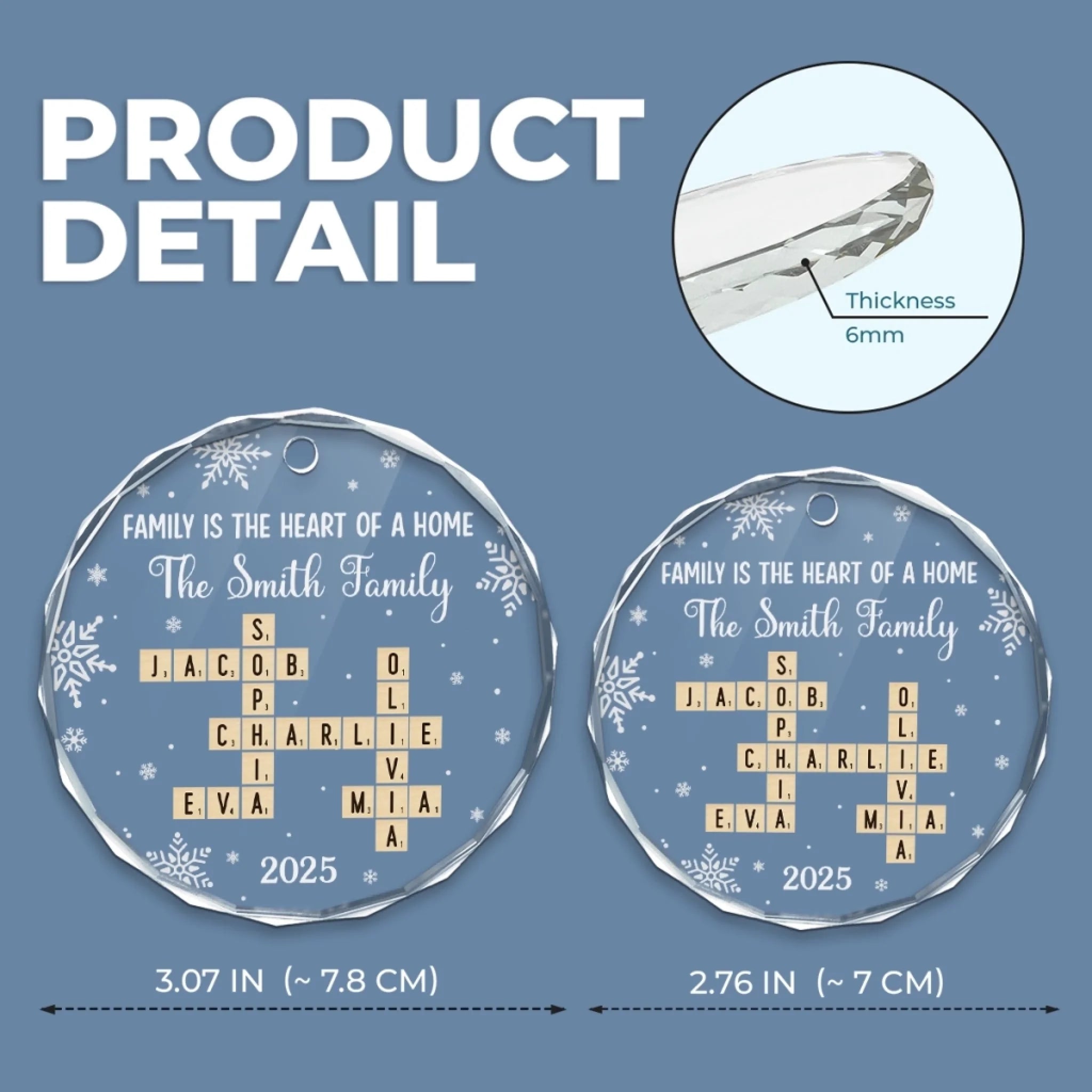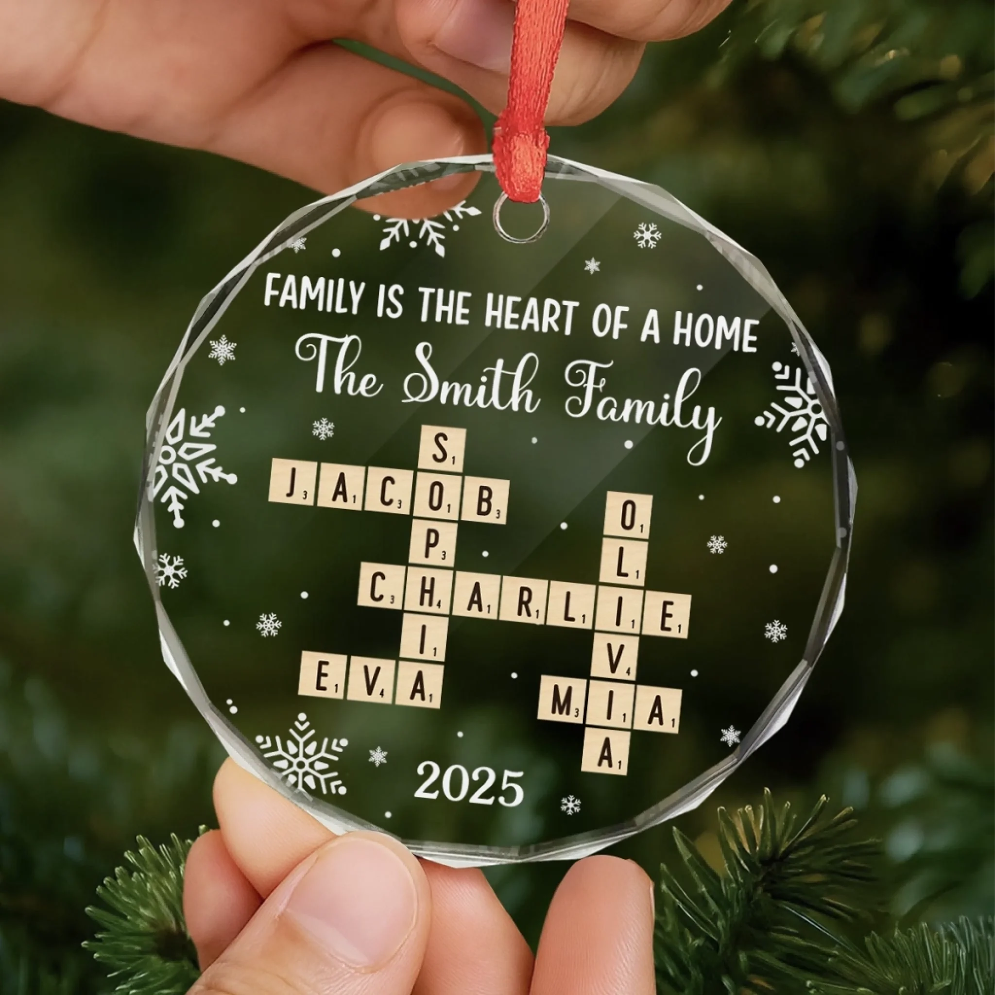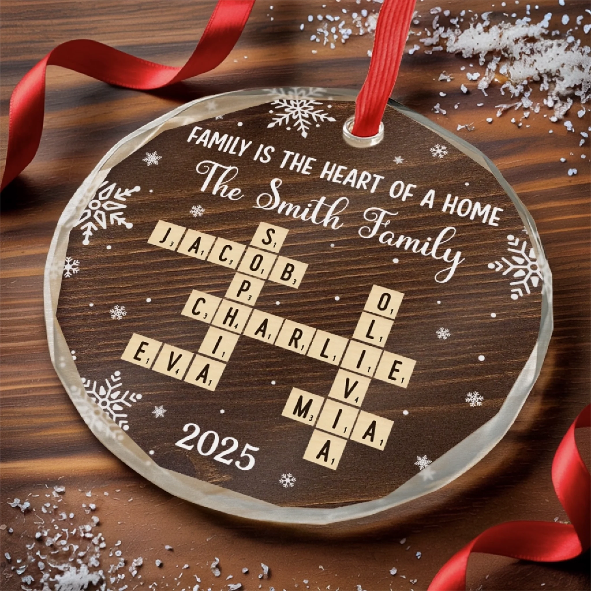 Custom Scrabble Circle Glass Ornament - Personalized Christmas Birthday Gifts For Mom, Dad, Brother, Sister, Kids - Home Built With Shared Love