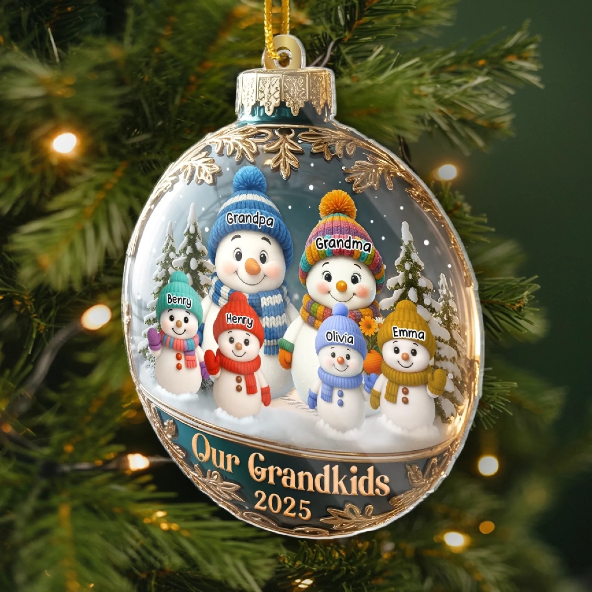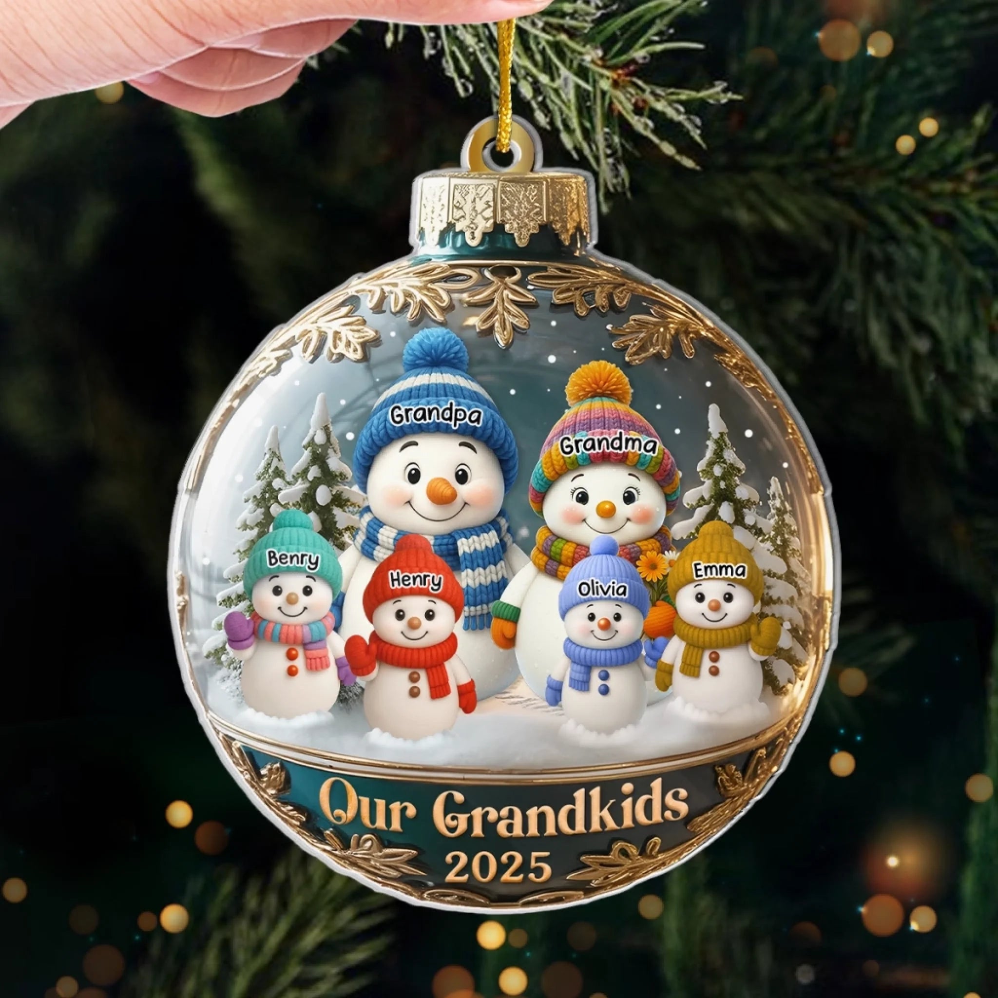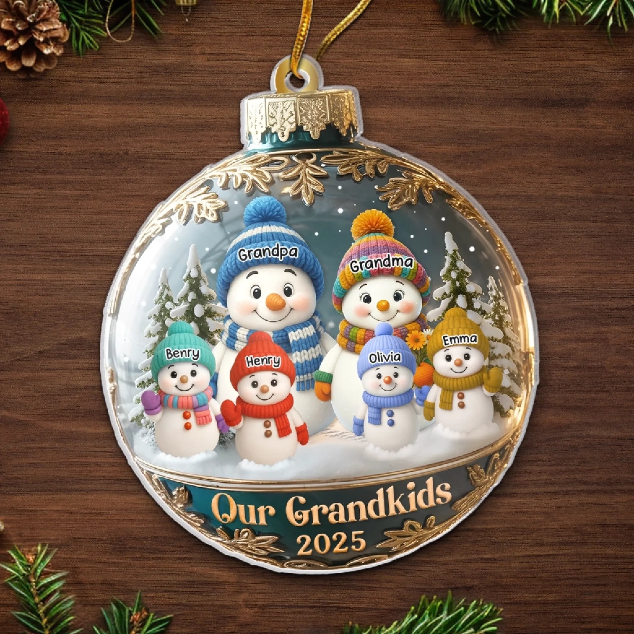 Custom Snowman Acrylic Ornament - Personalized Christmas Birthday Gifts For Grandpa, Grandma - Love That Spans Generations