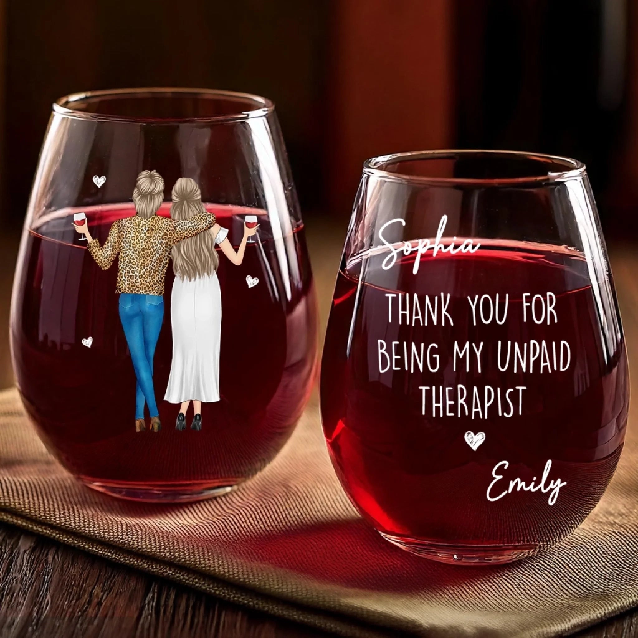 Custom Wine Glass - Personalized Best Friend Birthday Gifts For Women, Besties, Sisters, BFF - Our Kind Of Therapy