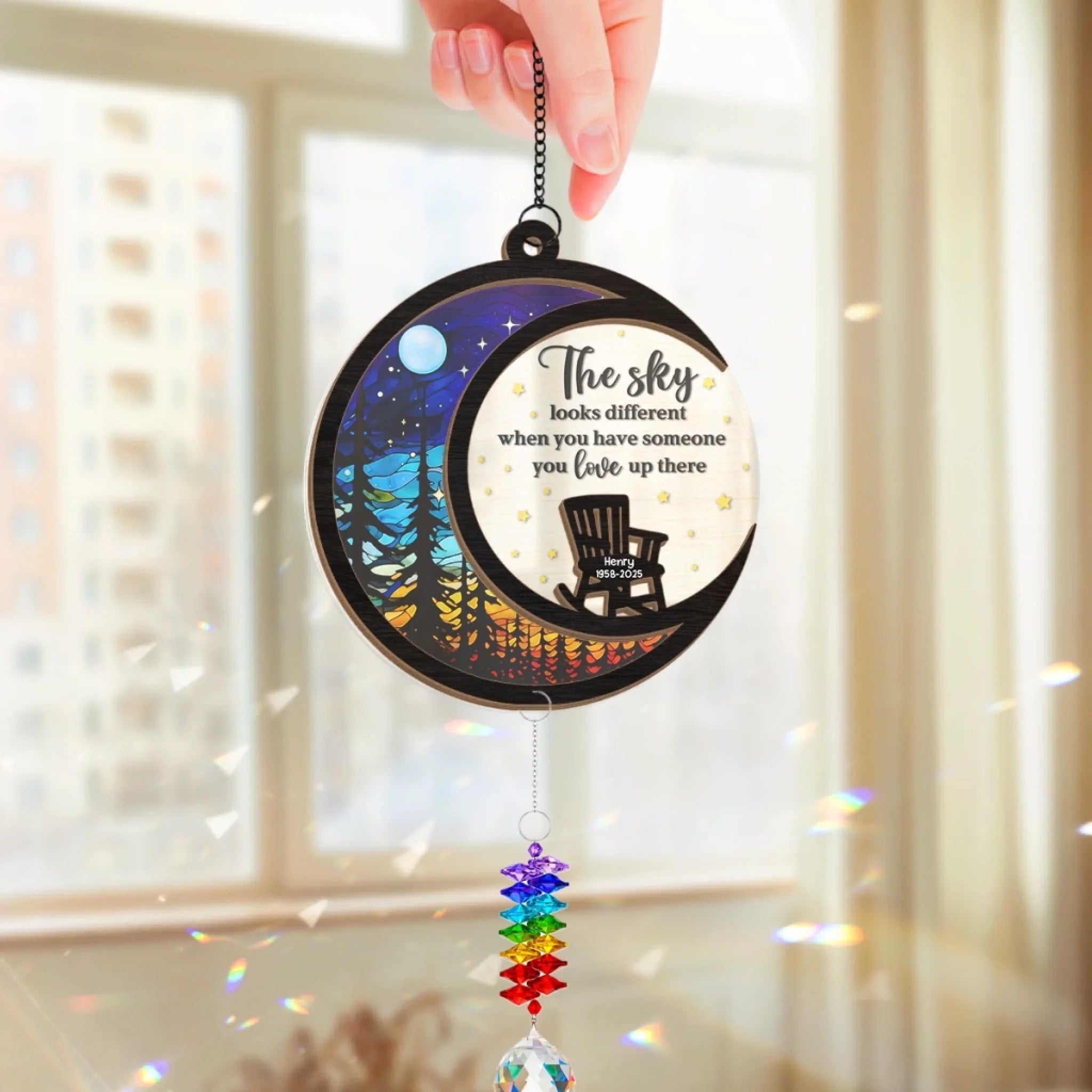 This suncatcher with crystal prism is a captivating accent piece that brings vibrant color and light into any space. Featuring vivid artwork and a shimmering rainbow charm, it transforms sunlight into dazzling reflections that dance across your walls and floors. Perfect for hanging near windows, patios, gardens, or even in your car as a rearview mirror charm. This is the perfect gift for anyone, suitable for all occasions: birthdays, holidays, anniversaries, graduations, Valentine’s Day, Mother’s Day, Father’s Day, and just because! Whether for friends, family, or that special someone, this versatile gift is guaranteed to bring joy and make lasting memories.