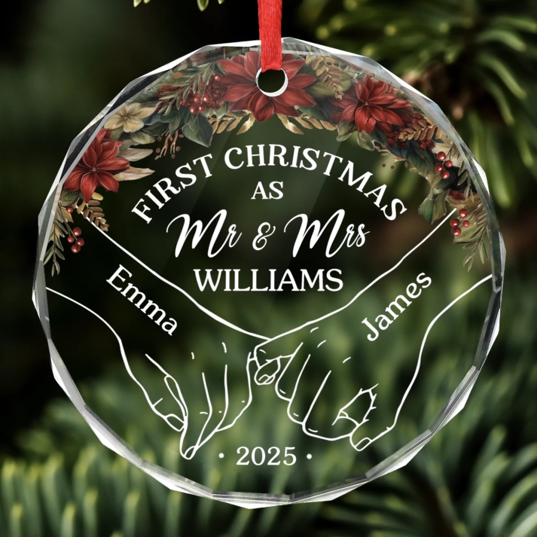 First Christmas Together - Couple Personalized Custom Circle Glass Ornament - Christmas Gift For Husband Wife, Anniversary, First Christmas
