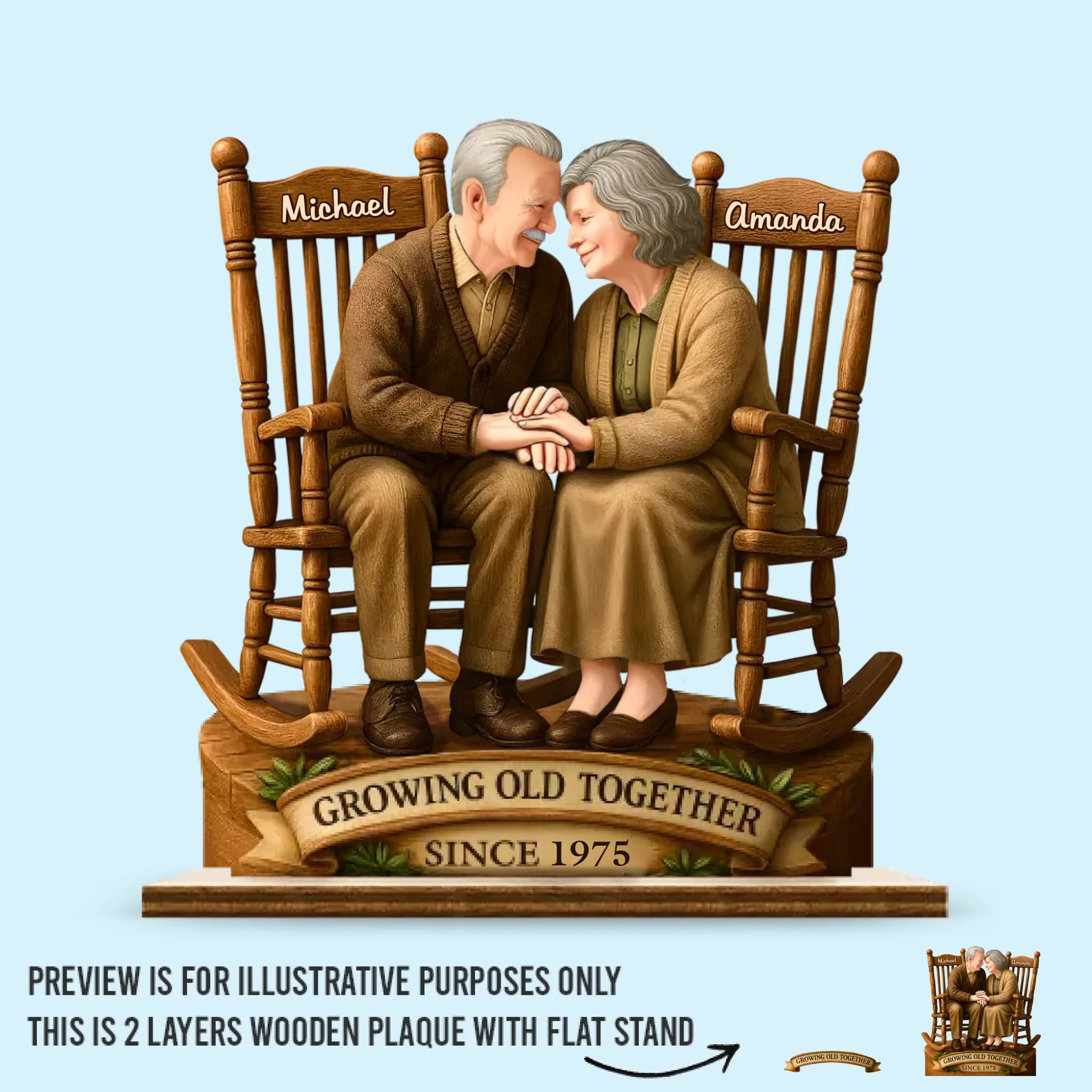 Love That Grows With Time - Couple Personalized Custom Shaped 2-Layered Wooden Plaque With Flat Stand - House Warming Gift For Husband Wife, Anniversary