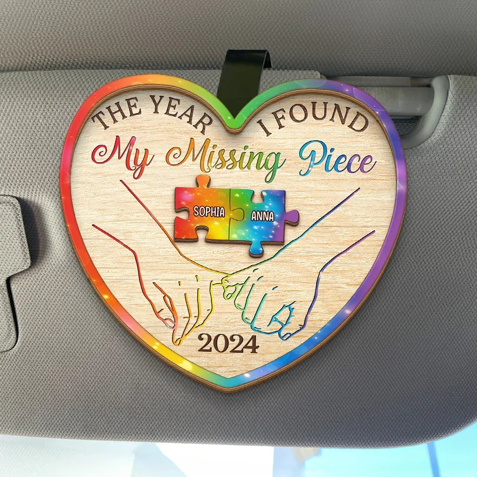 The Year I Found My Missing Piece - Couple Personalized Custom Car Visor Clip - Gift For Husband Wife, Anniversary, LGBTQ+